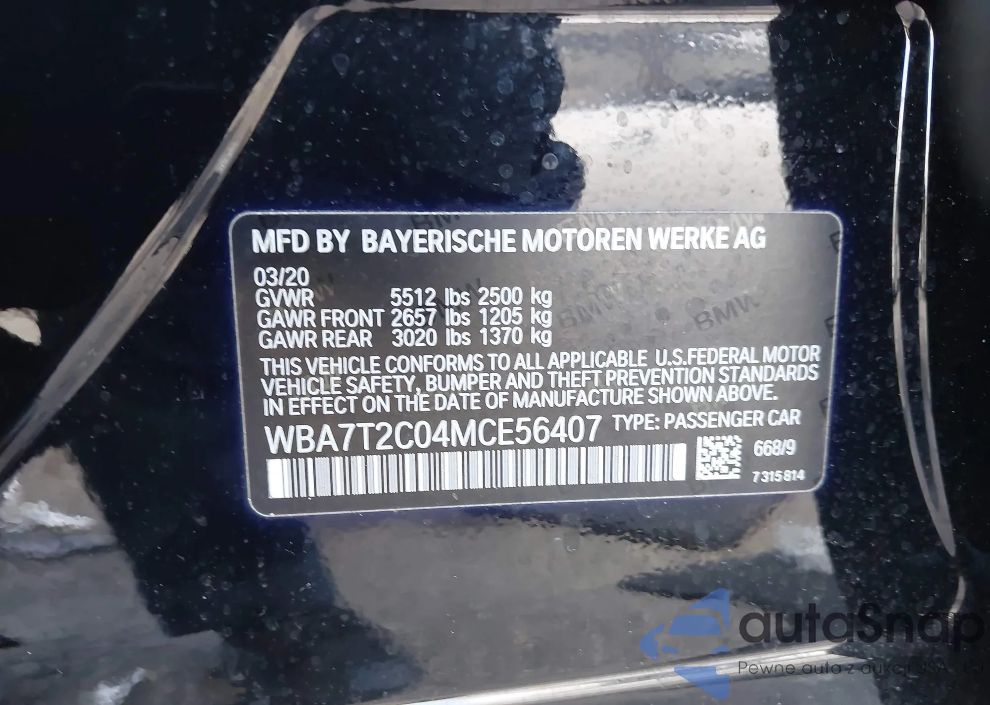 LOT: 42571204 VIN: WBA7T2C04MCE56407