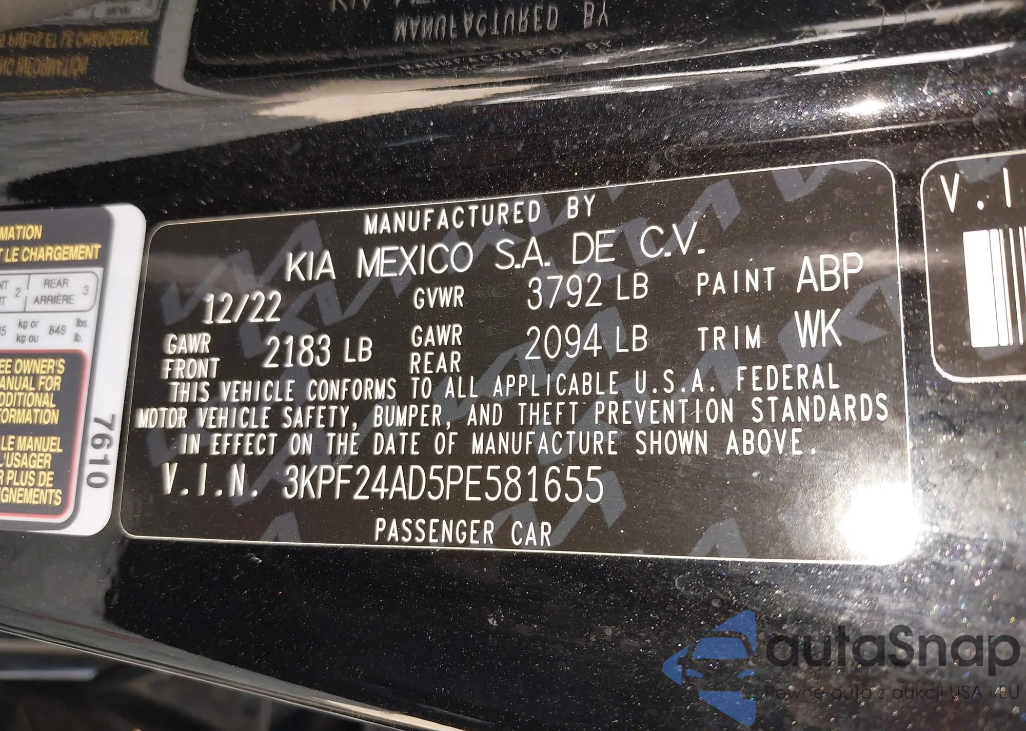 • VIN 3KPF24AD5PE581655