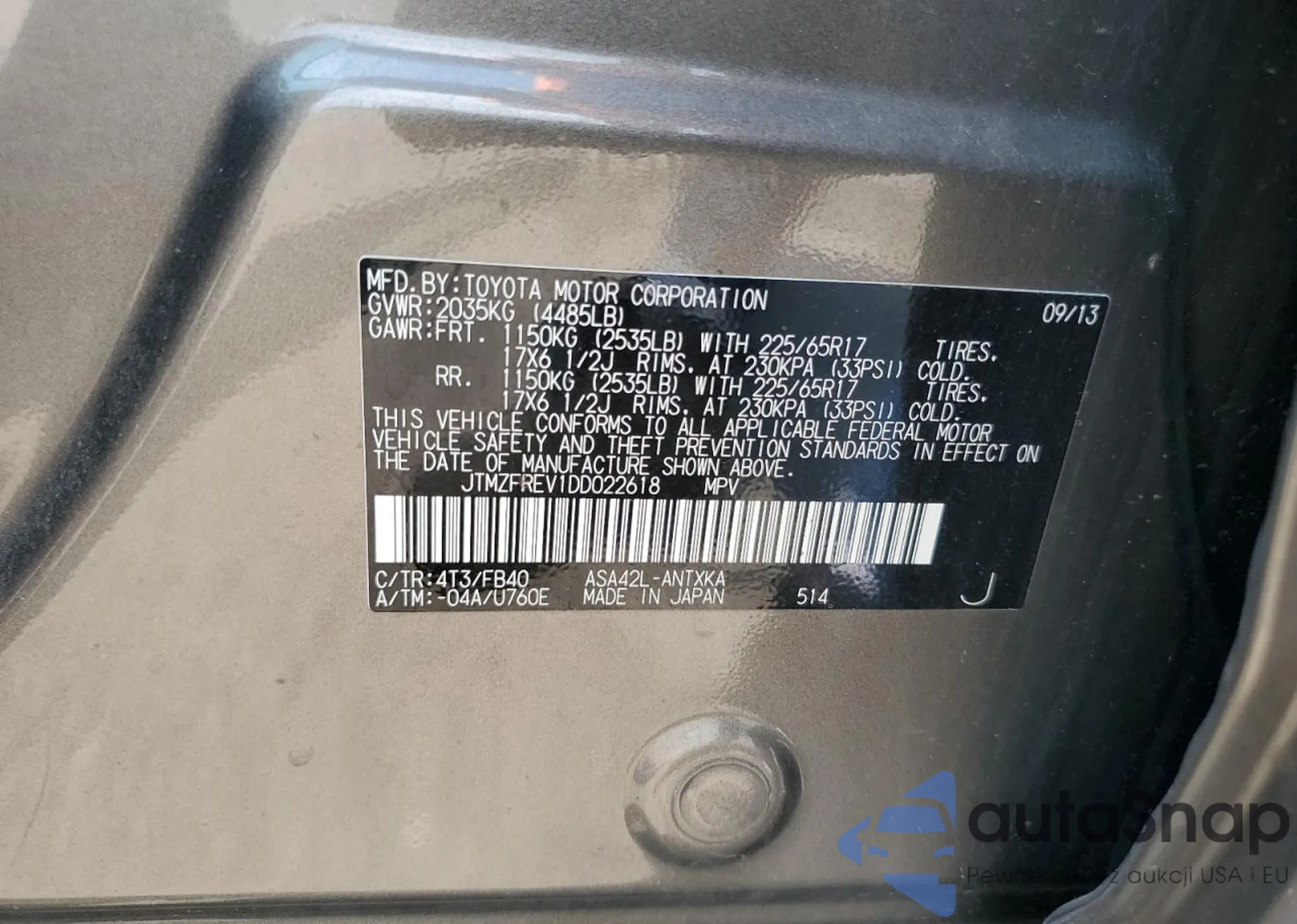 • VIN 1C4PJMDN1KD130809