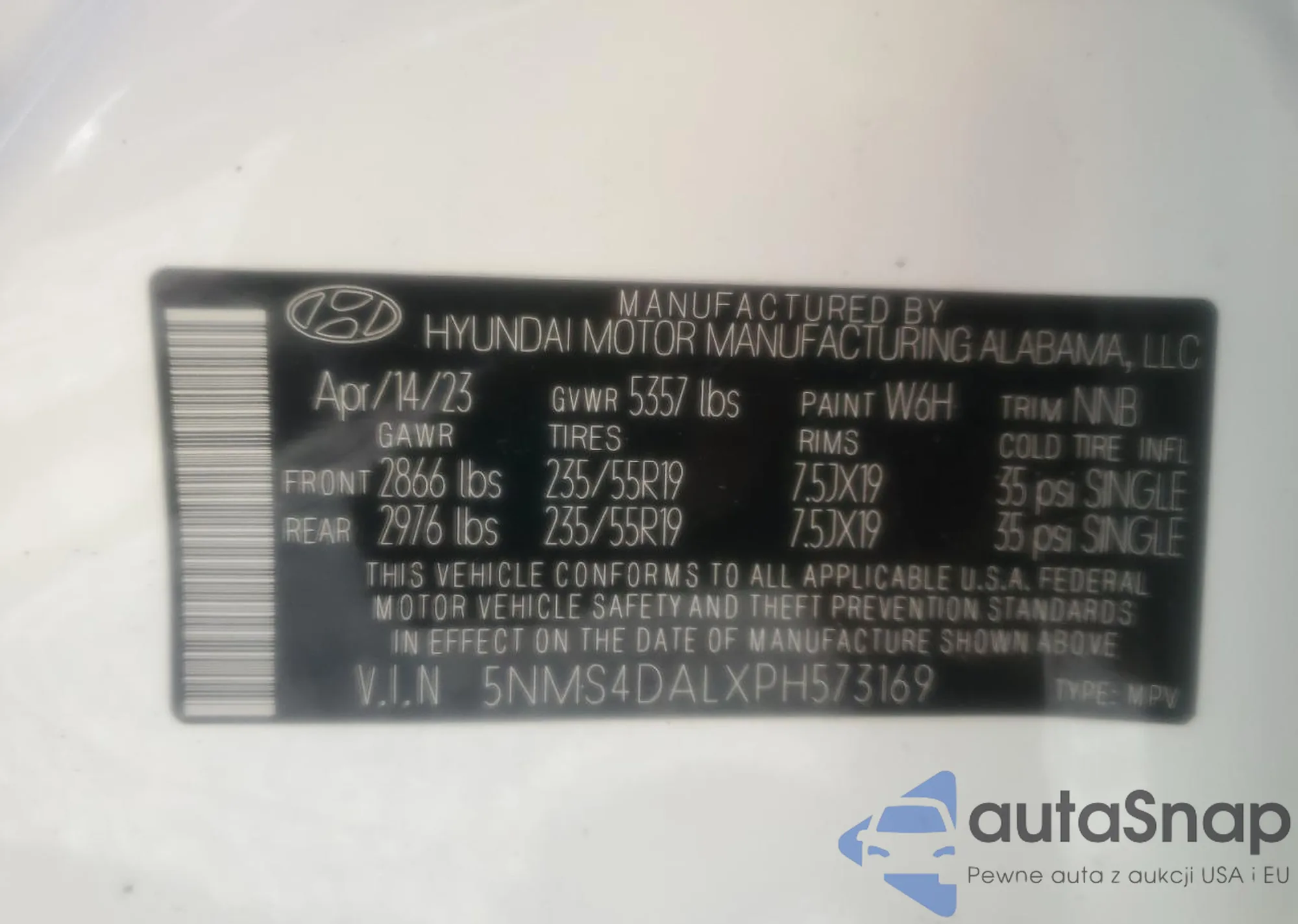• VIN 5NMS4DALXPH573169
