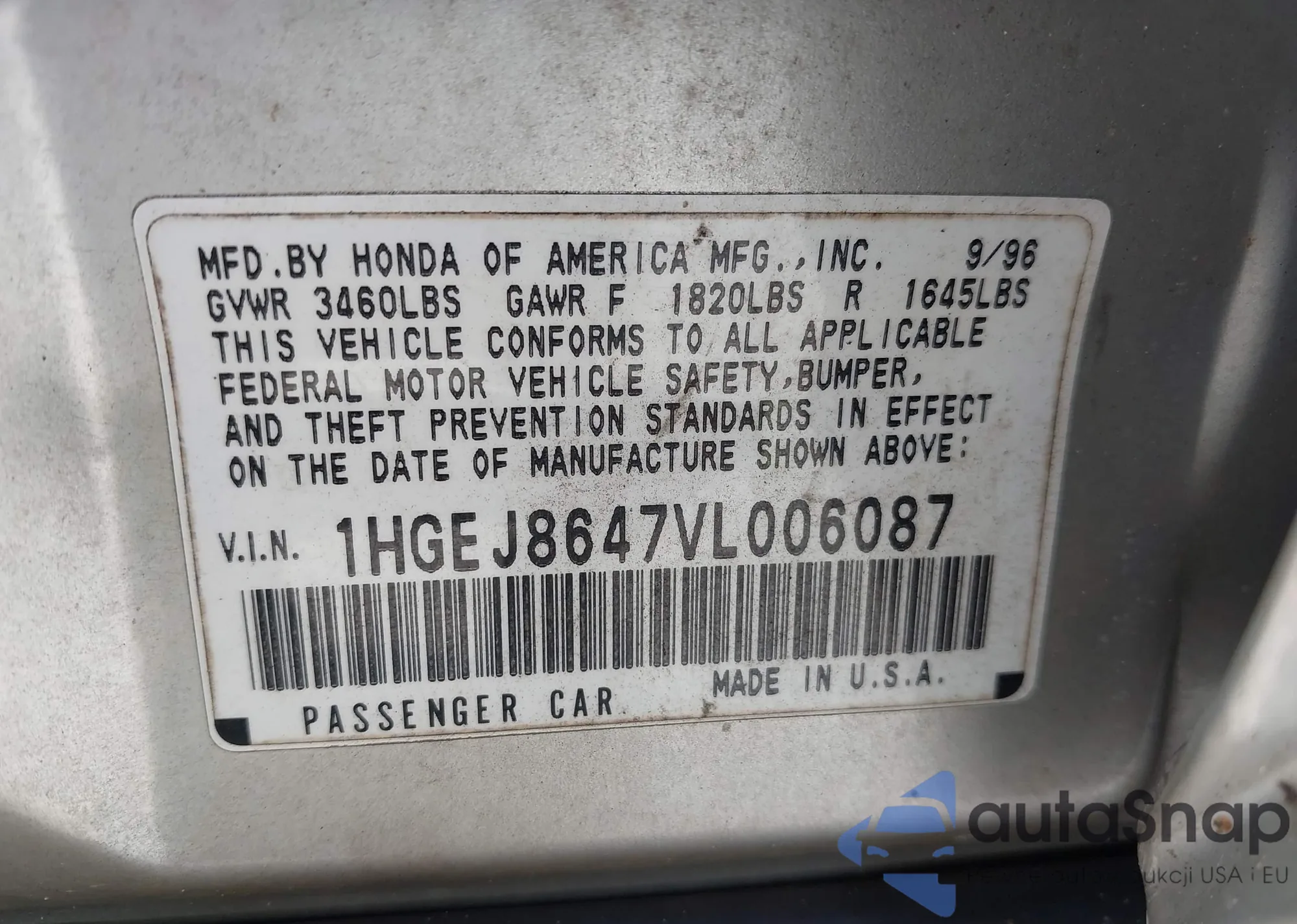 • VIN 1HGEJ8647VL006087