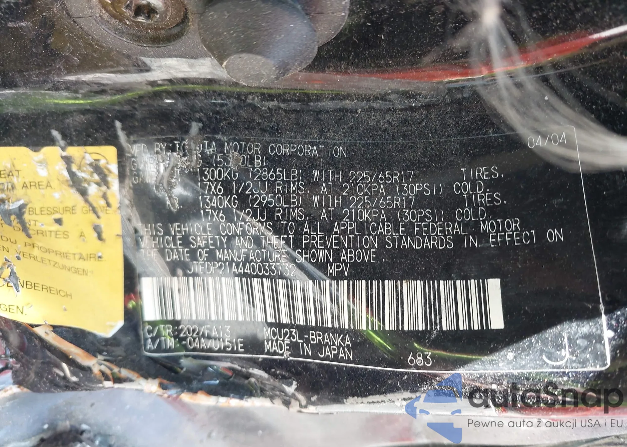LOT: 42539331 VIN: JTEDP21A440033732