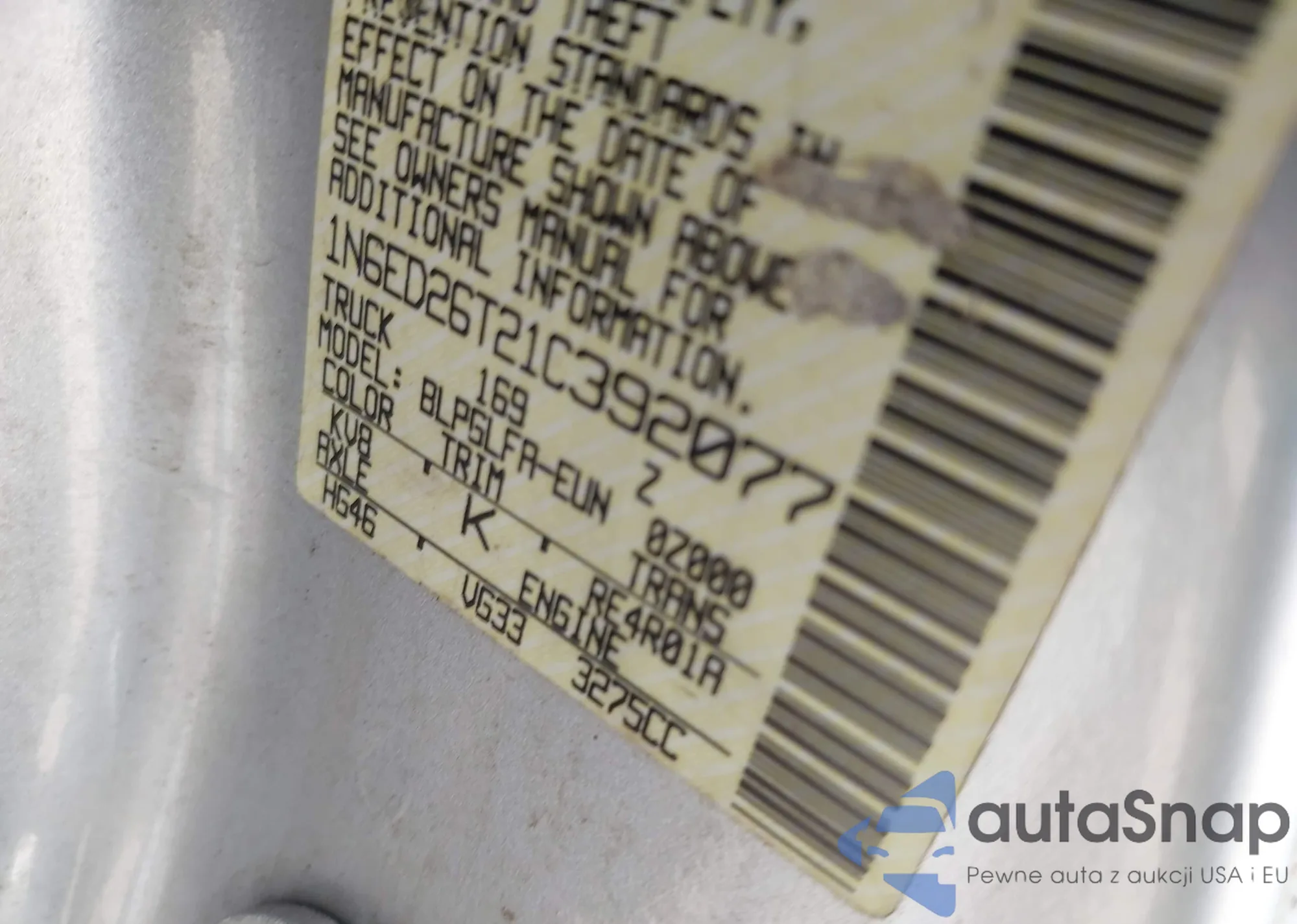• VIN 1N6ED26T21C392077