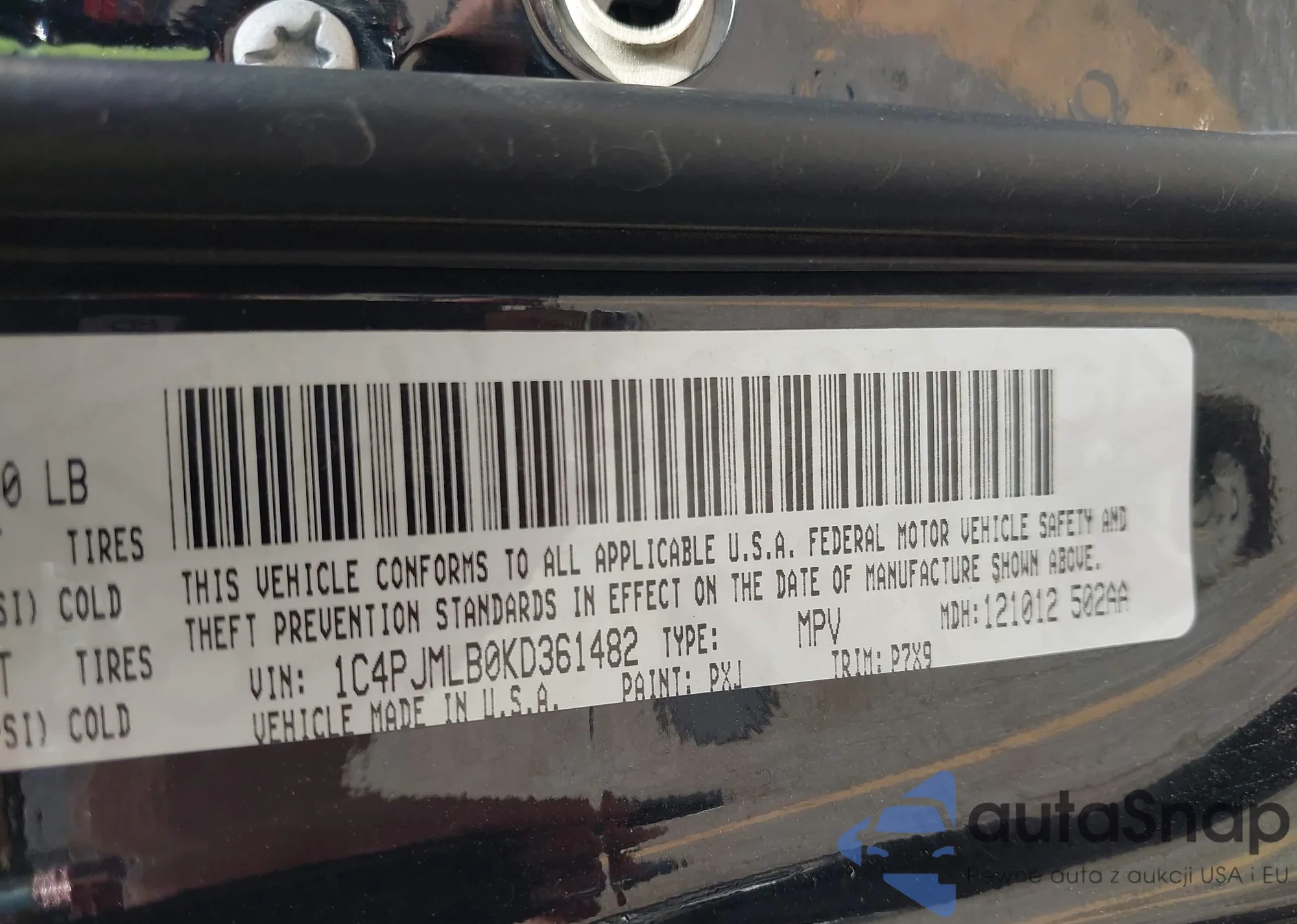 • VIN 1C4PJMLB0KD361482