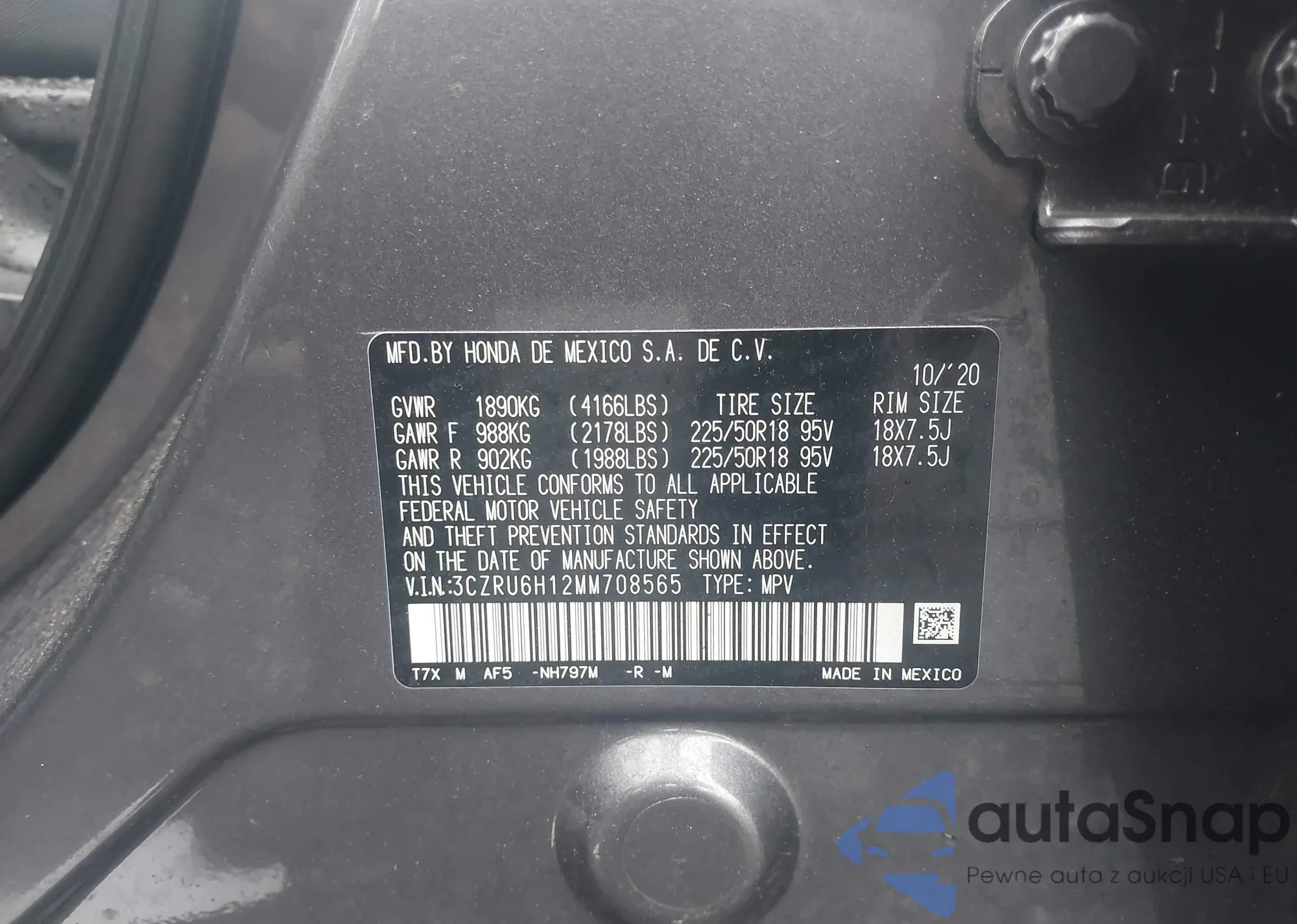 • VIN 3CZRU6H12MM708565