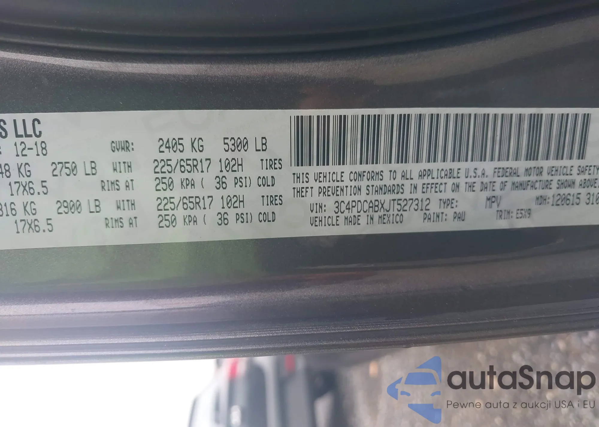 • VIN 3C4PDCABXJT527312