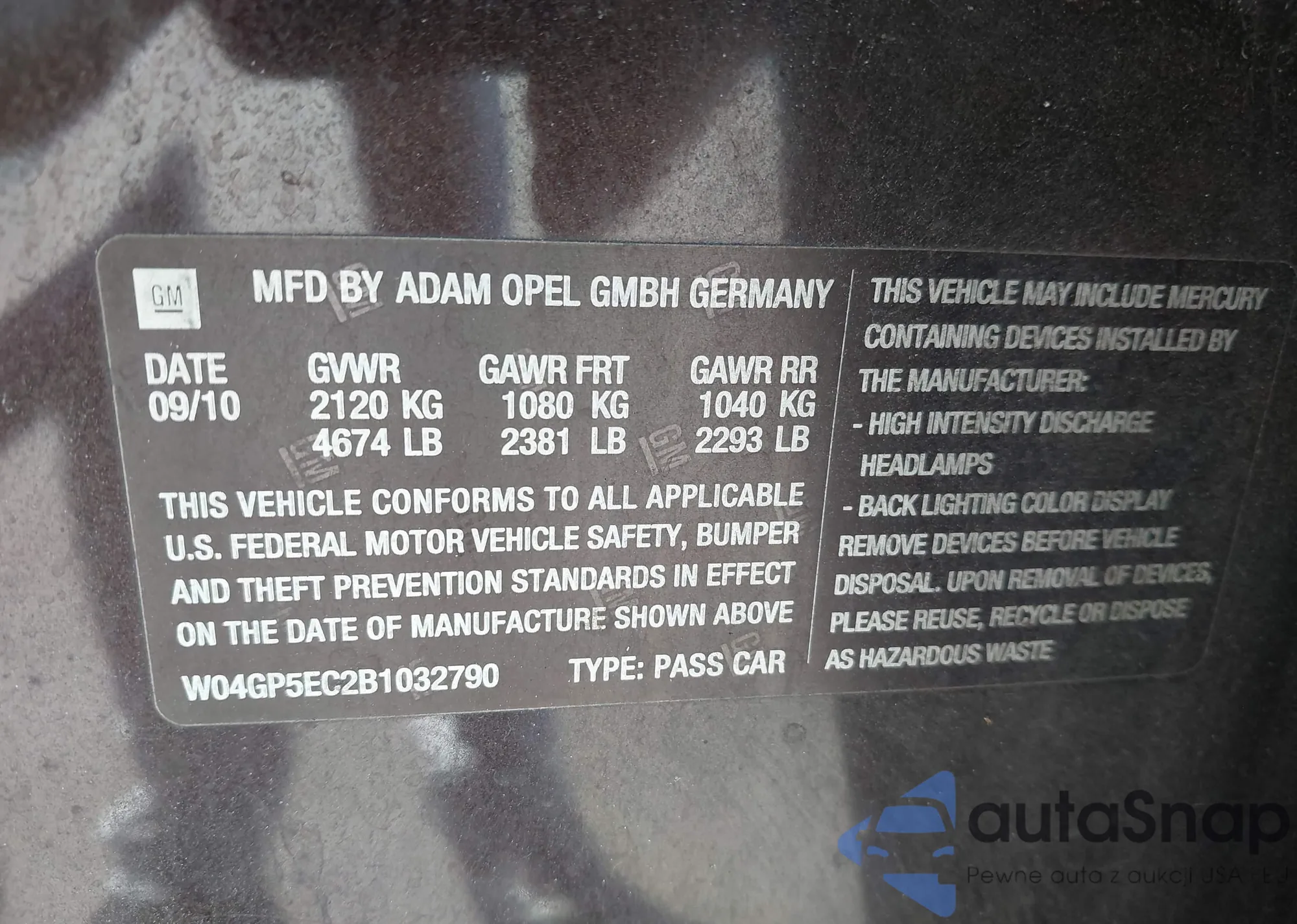 LOT: 43033602 VIN: 1GCWGAF75M1269871