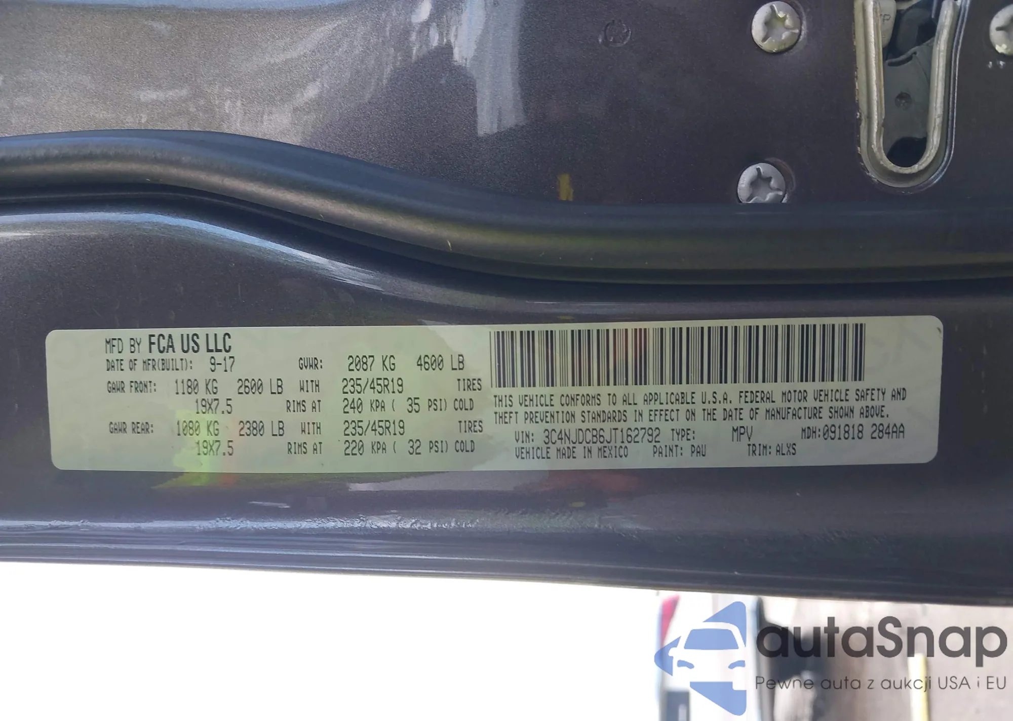 LOT: 42457510 VIN: 3C4PDCABXJT527312