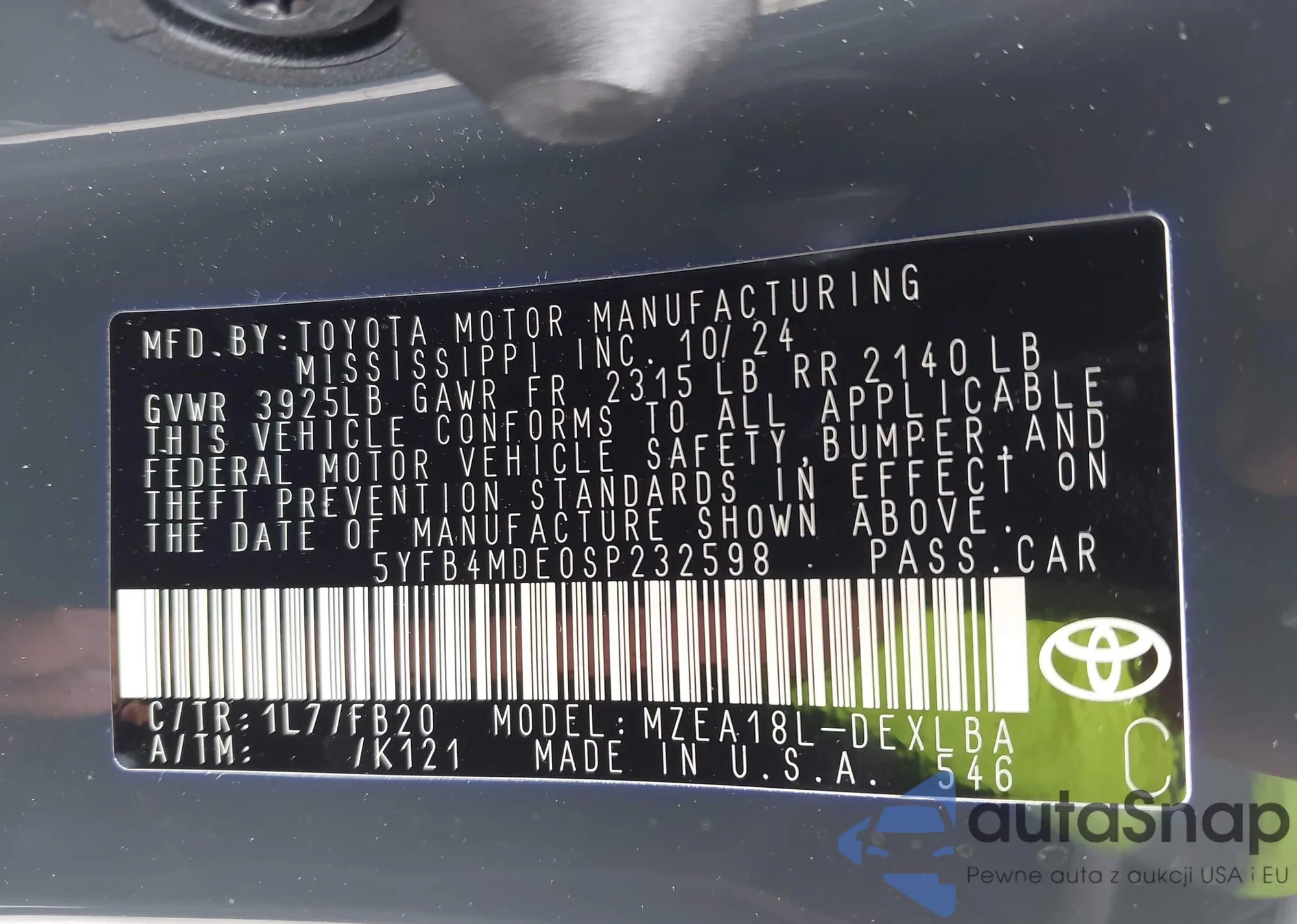 • VIN 5YFB4MDE0SP232598