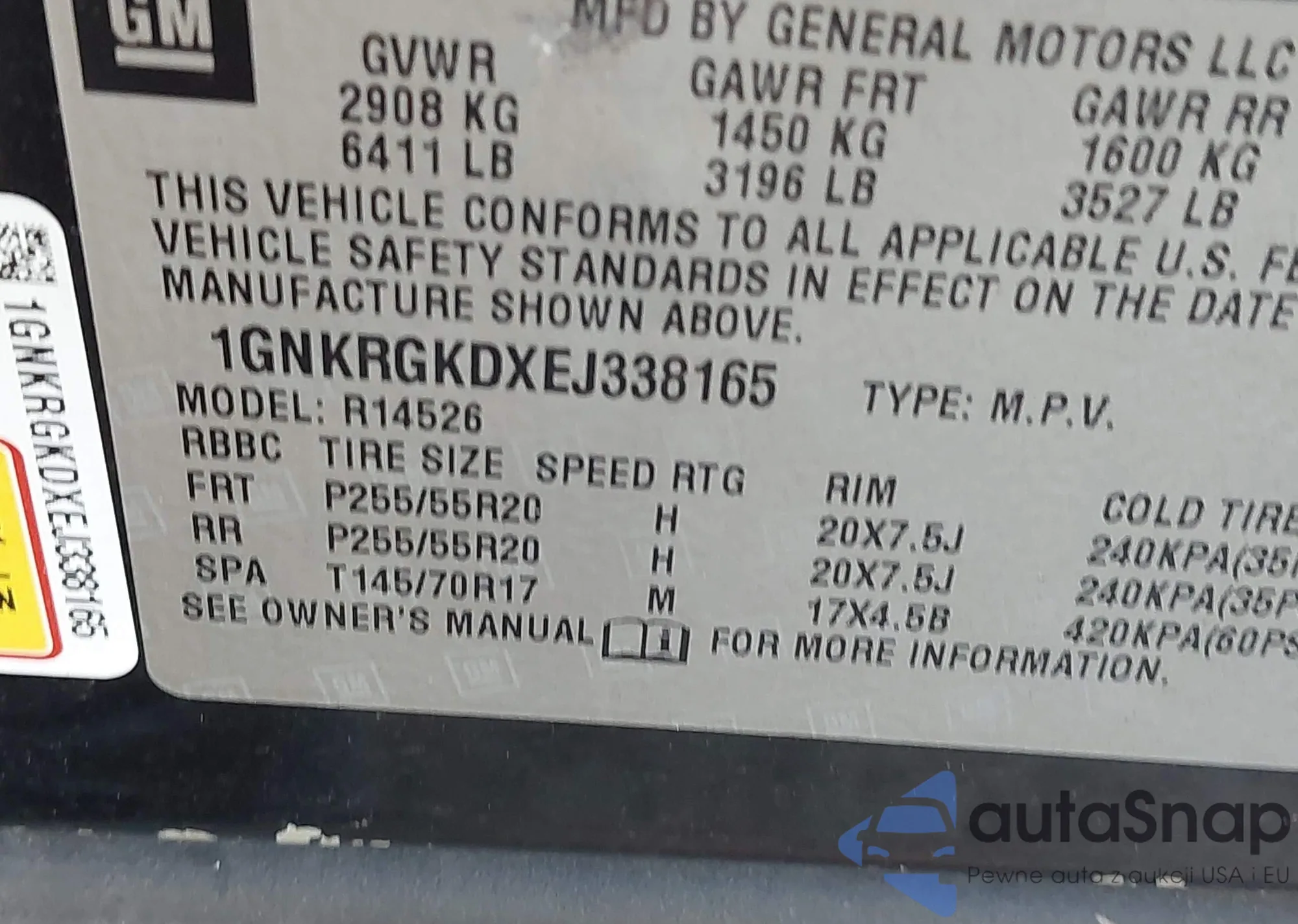 • VIN 1GNKRGKDXEJ338165