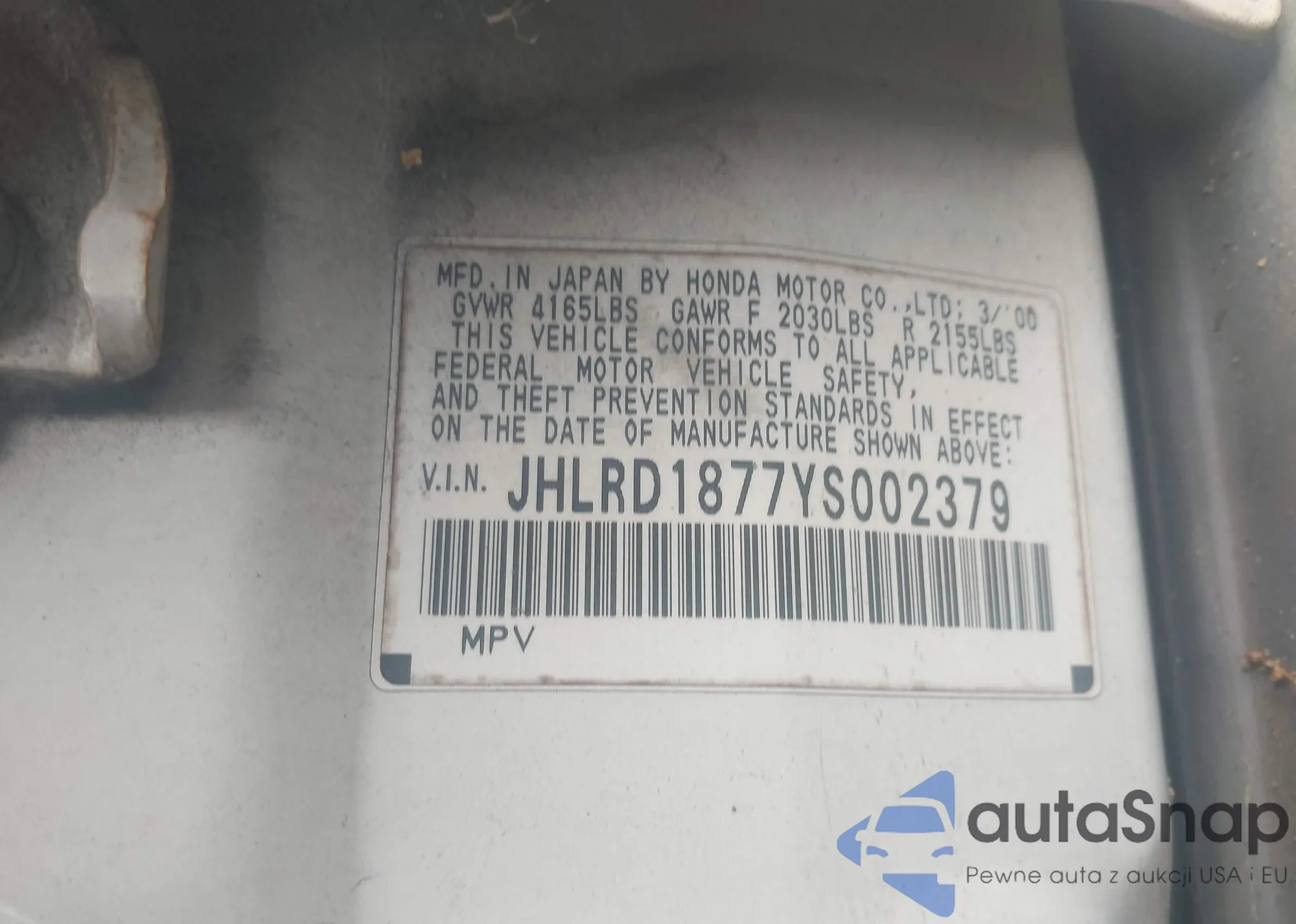 • VIN JHLRD1877YS002379