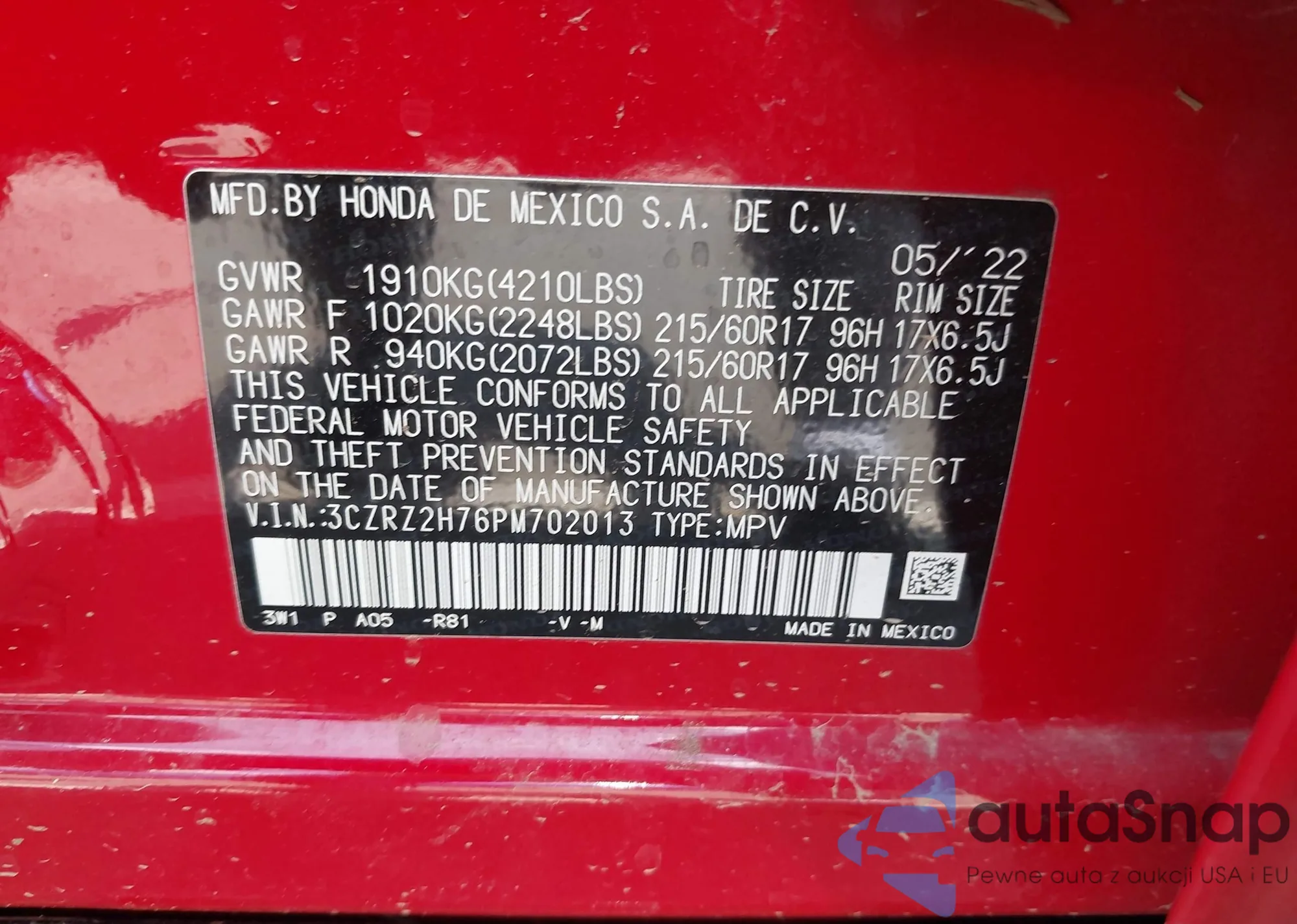 • VIN 3CZRZ2H76PM702013