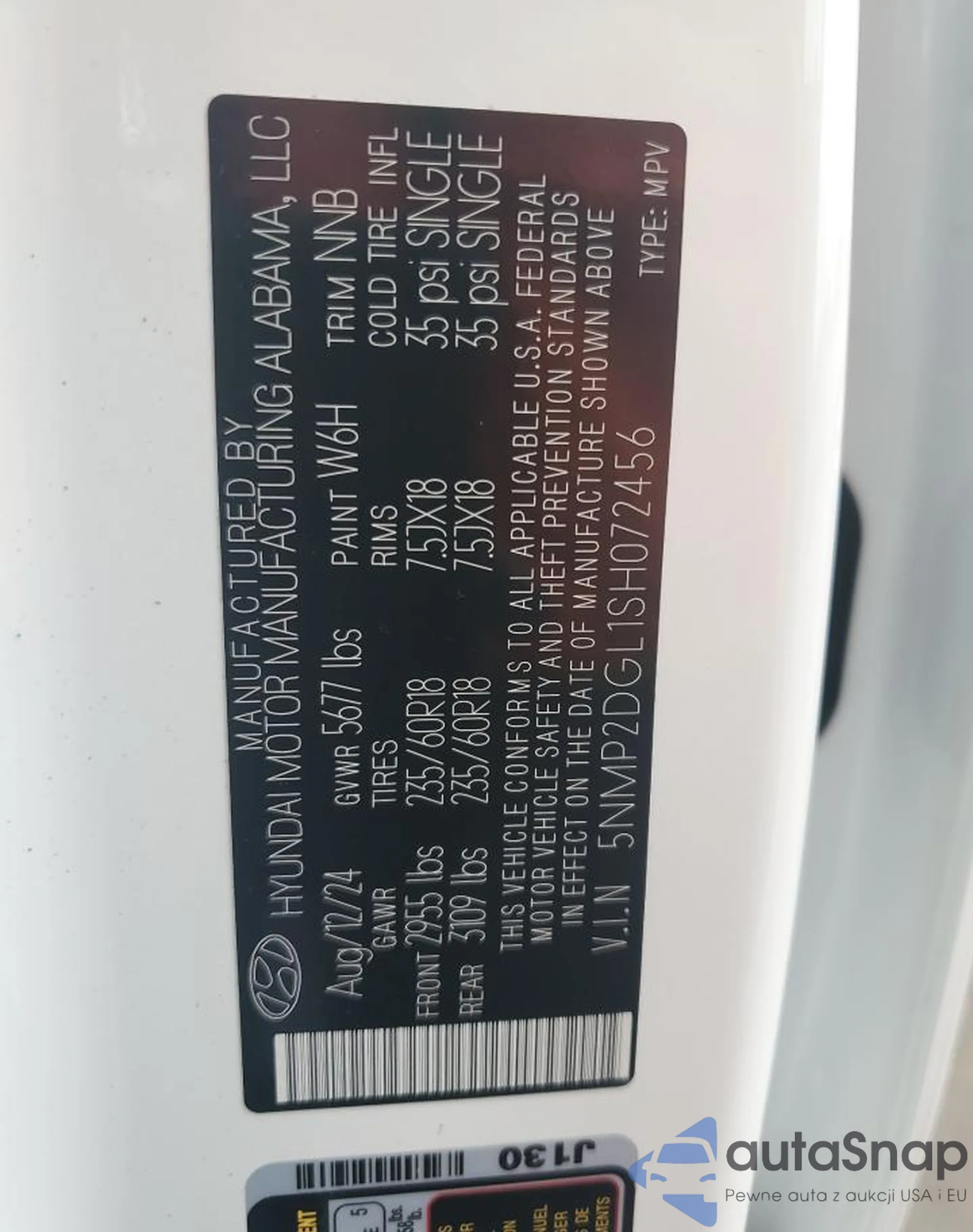 • VIN 5NMP2DGL1SH072456