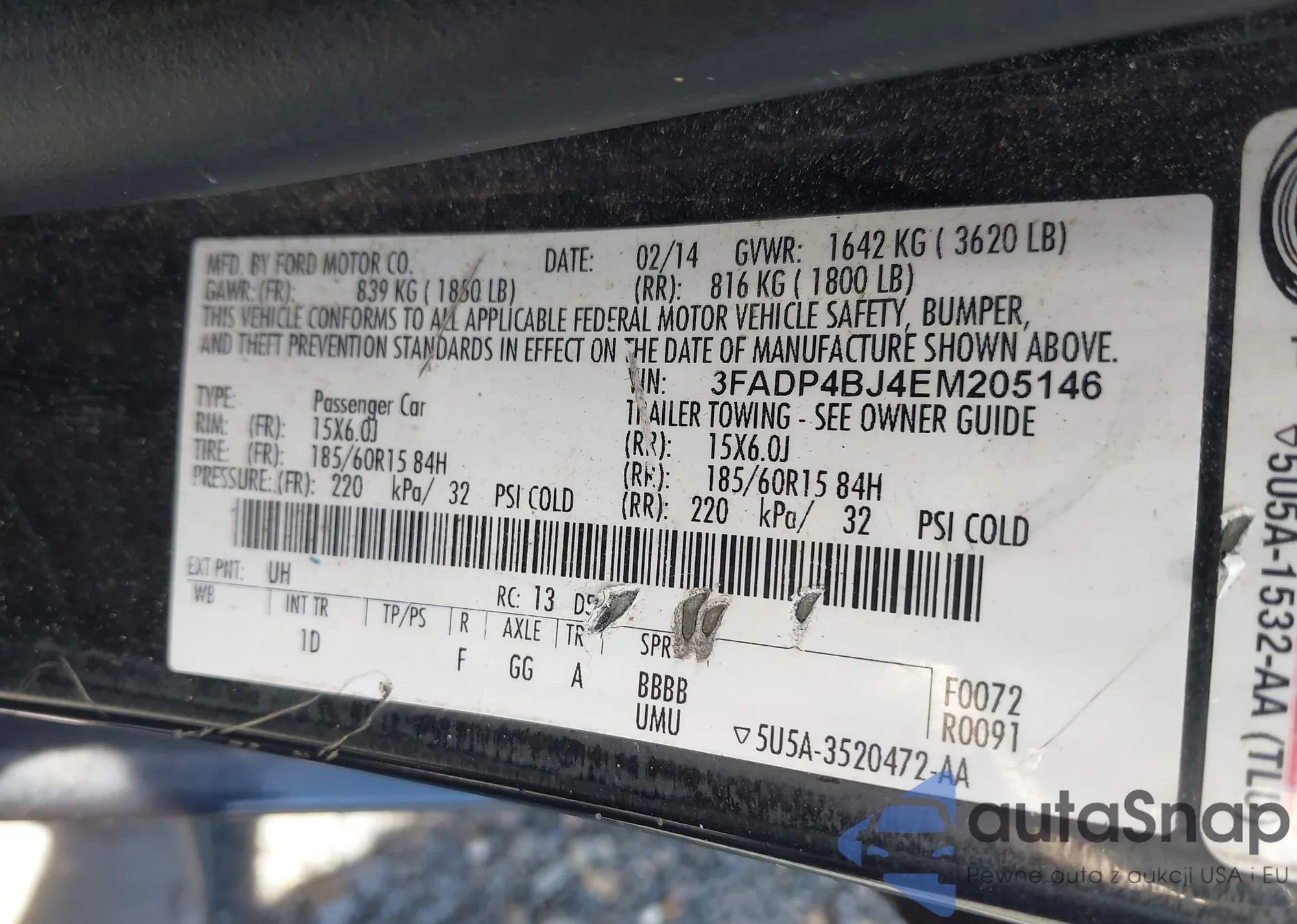 LOT: 43106970 VIN: 3FADP4BJ4EM205146
