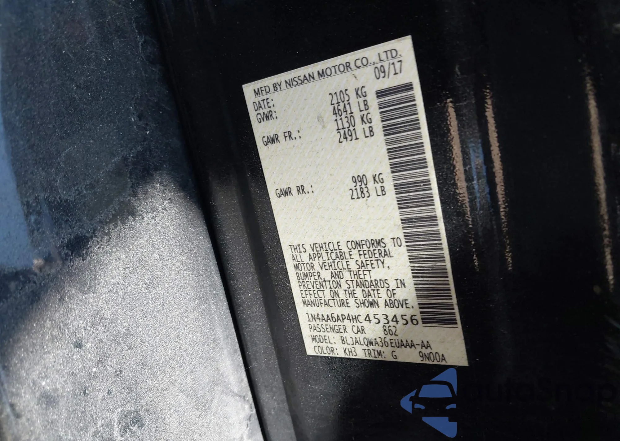 • VIN 1N4AA6AP4HC453456