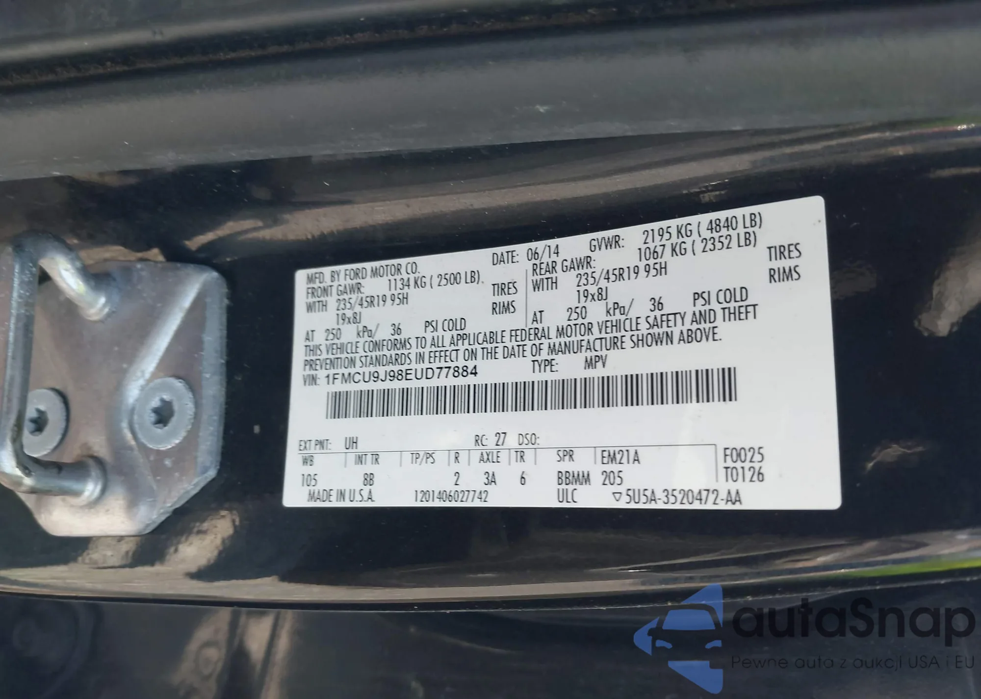 LOT: 43114498 VIN: 1FMCU9GX7EUA34327
