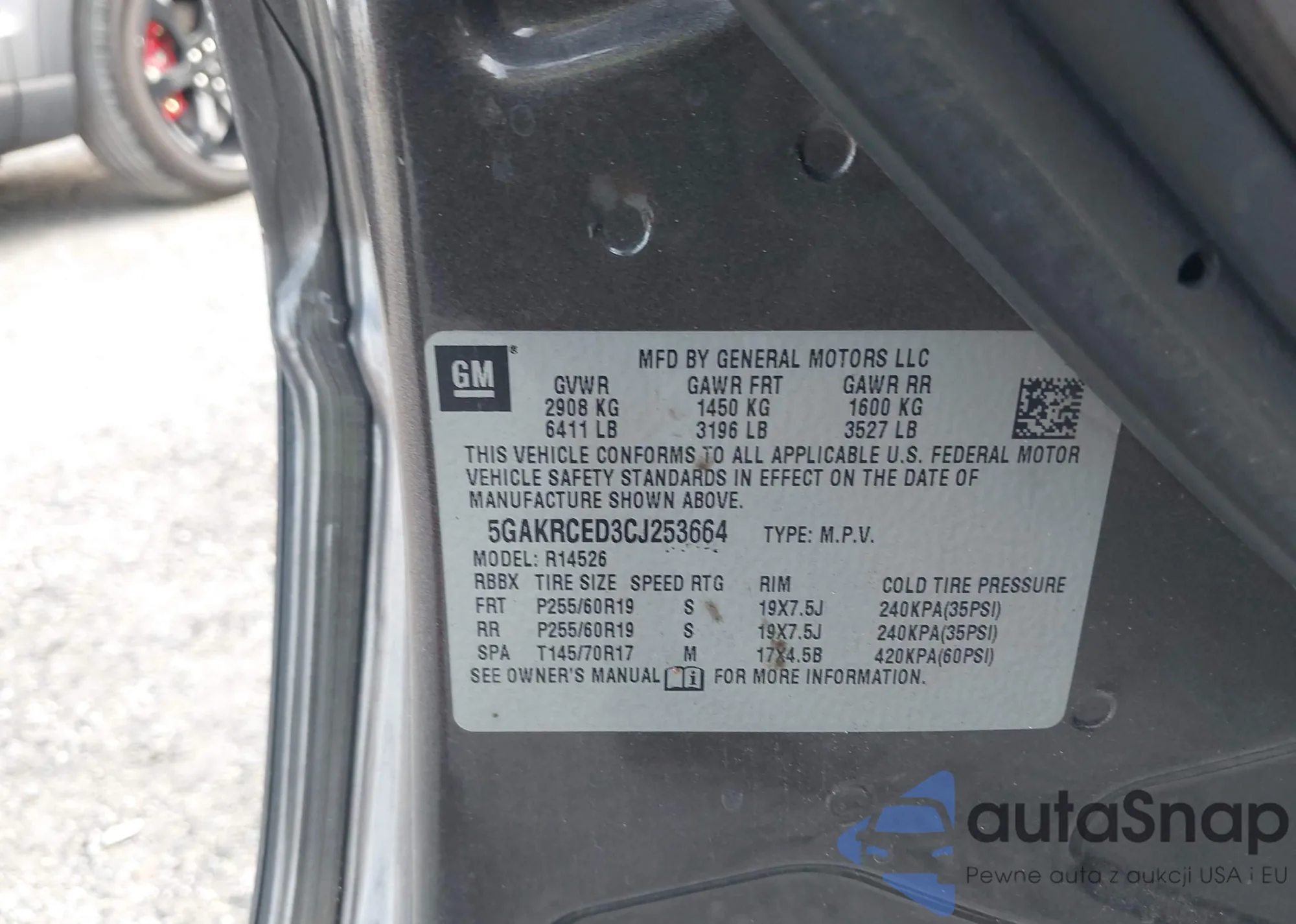LOT: 43139073 VIN: 5GAKRCED3CJ253664