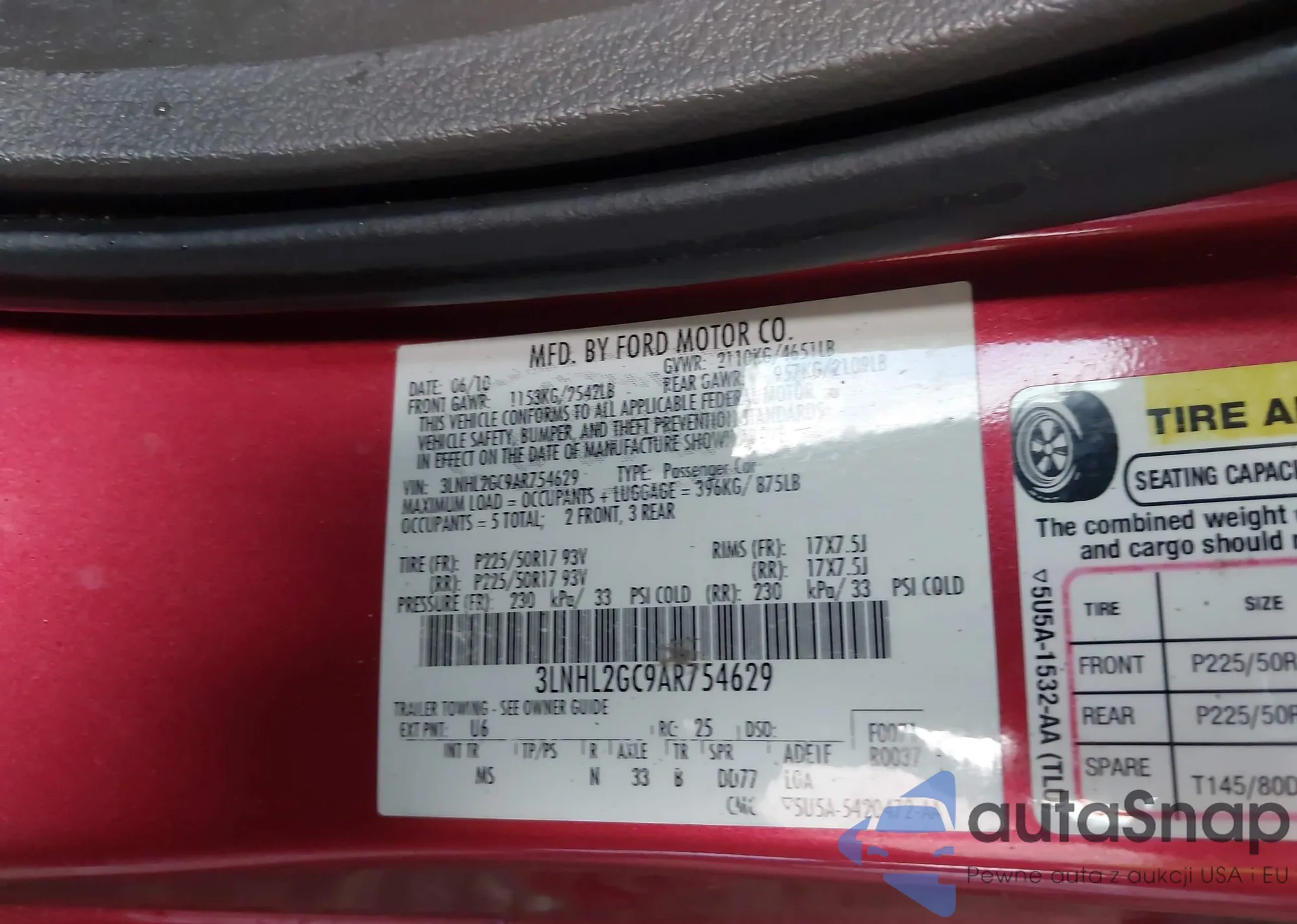 LOT: 43127404 VIN: 3FAHP0HG5AR423809
