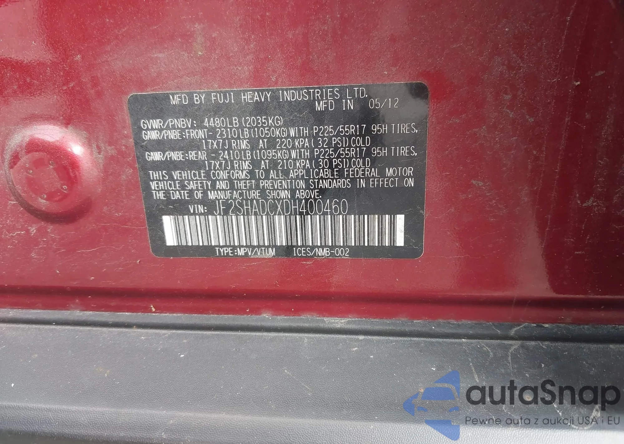 LOT: 43128369 VIN: JN8AS5MVXDW119733
