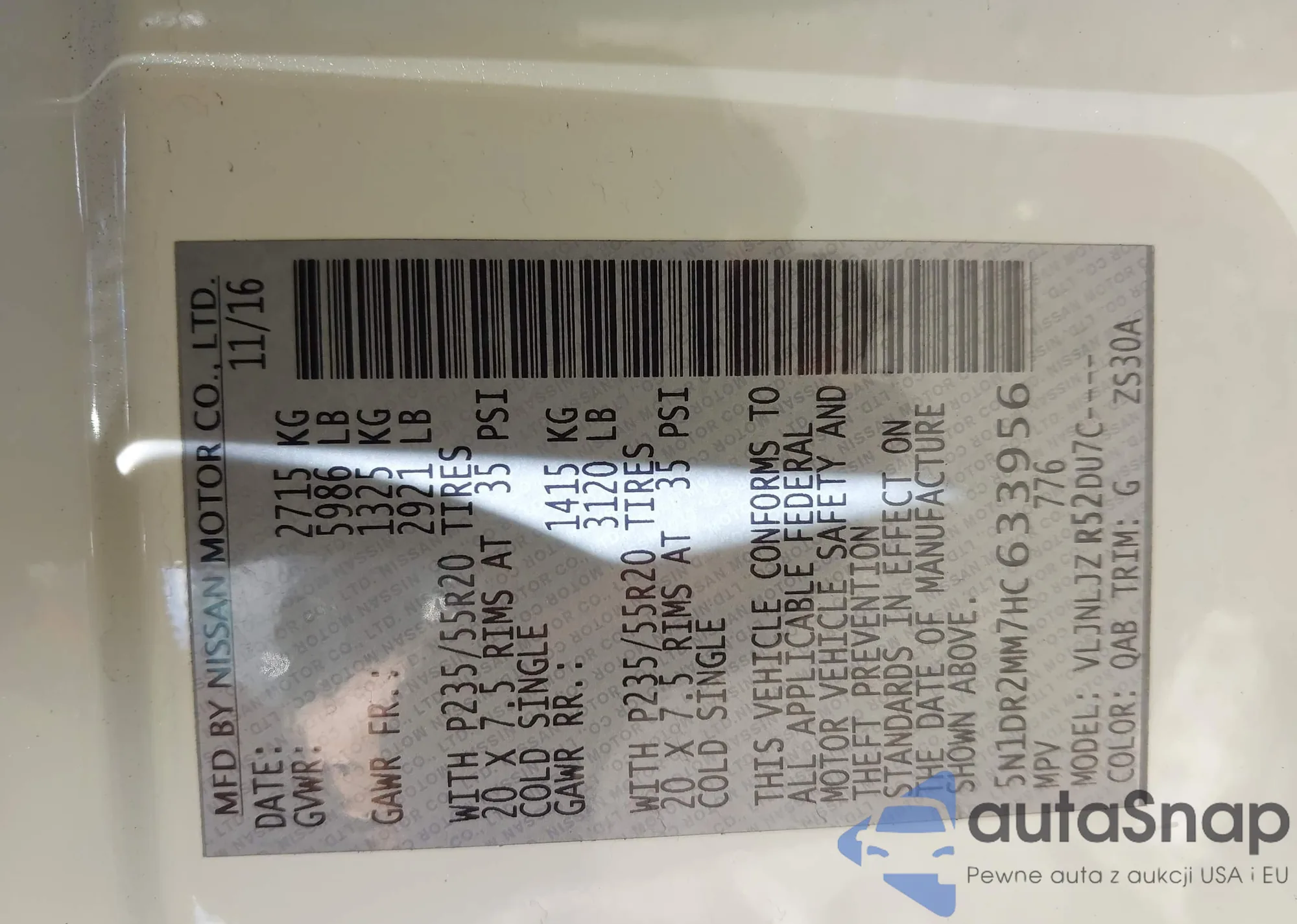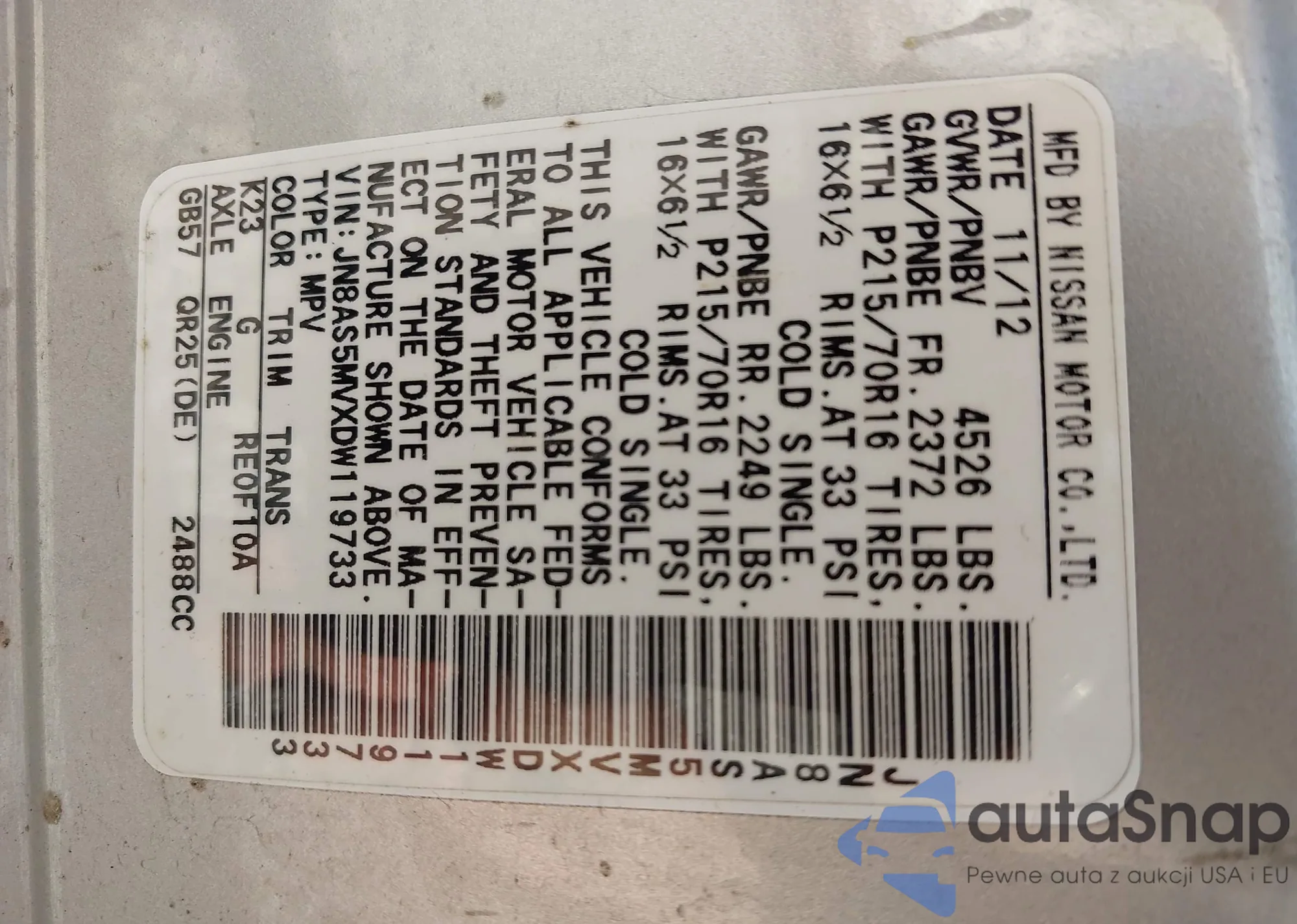 • VIN JN8AS5MVXDW119733