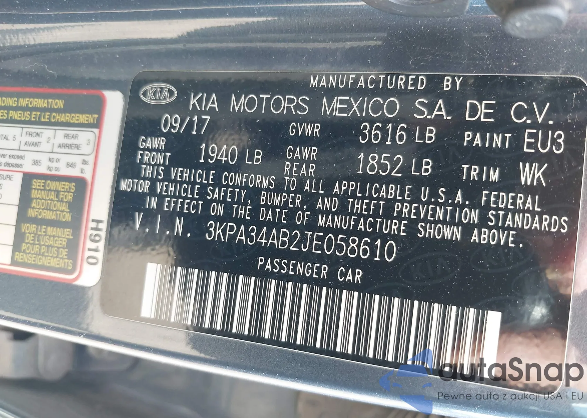 • VIN 3KPA34AB2JE058610
