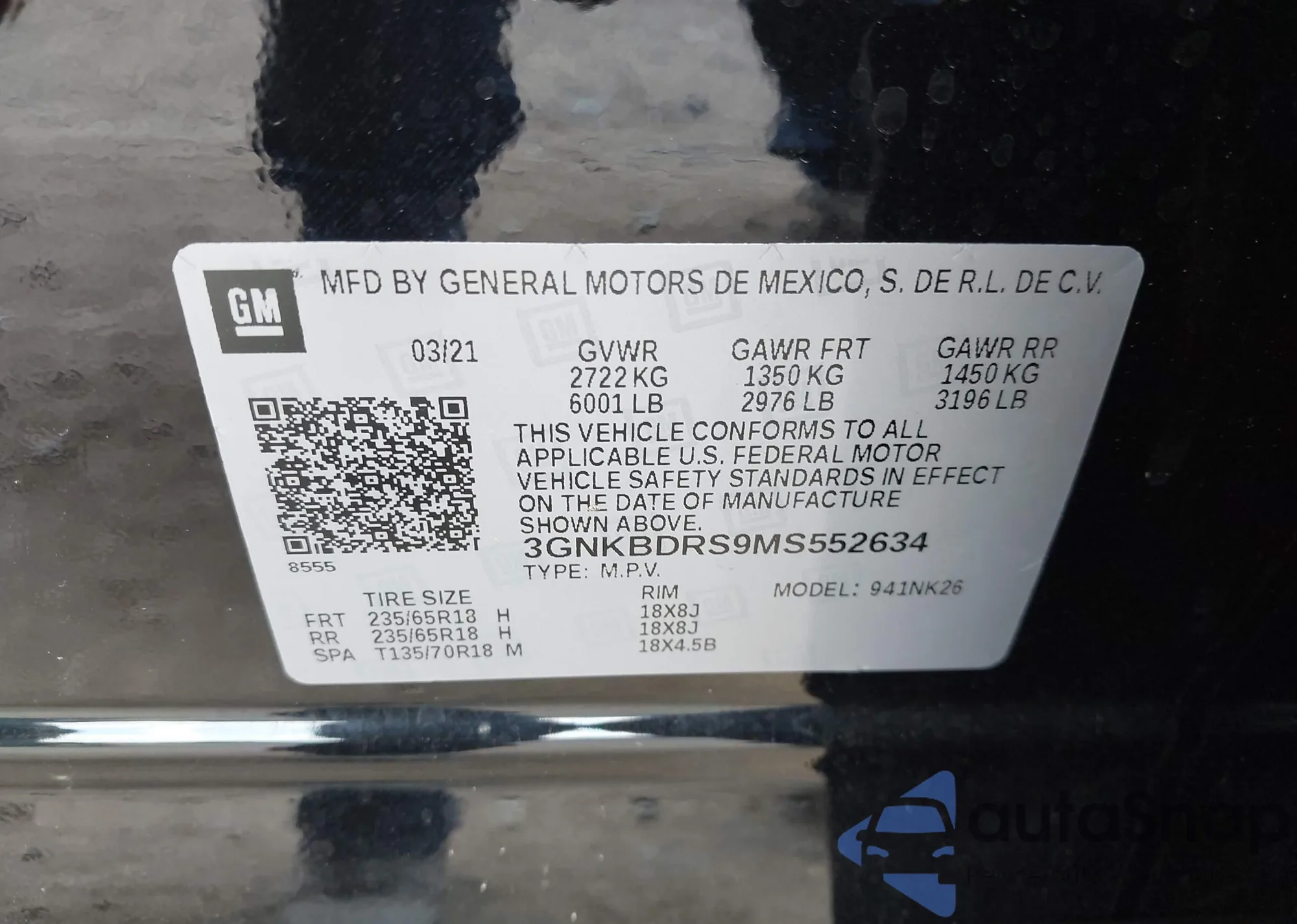 • VIN 3GNKBDRS9MS552634