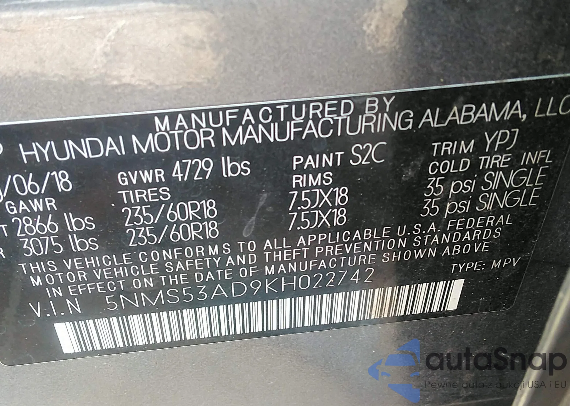 • VIN 5NMS53AD9KH022742
