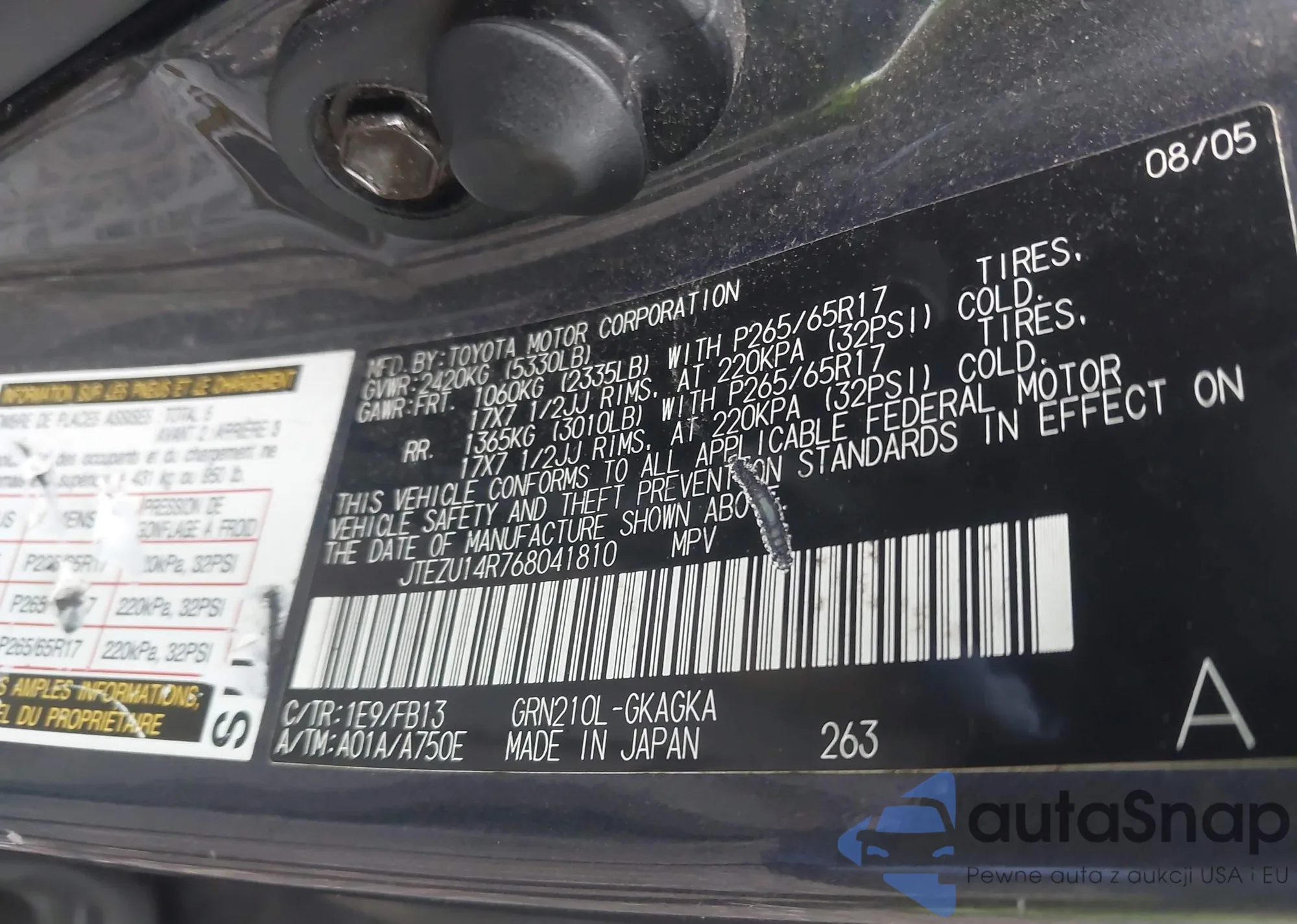 LOT: 42884746 VIN: 5NPE34AF9FH033839