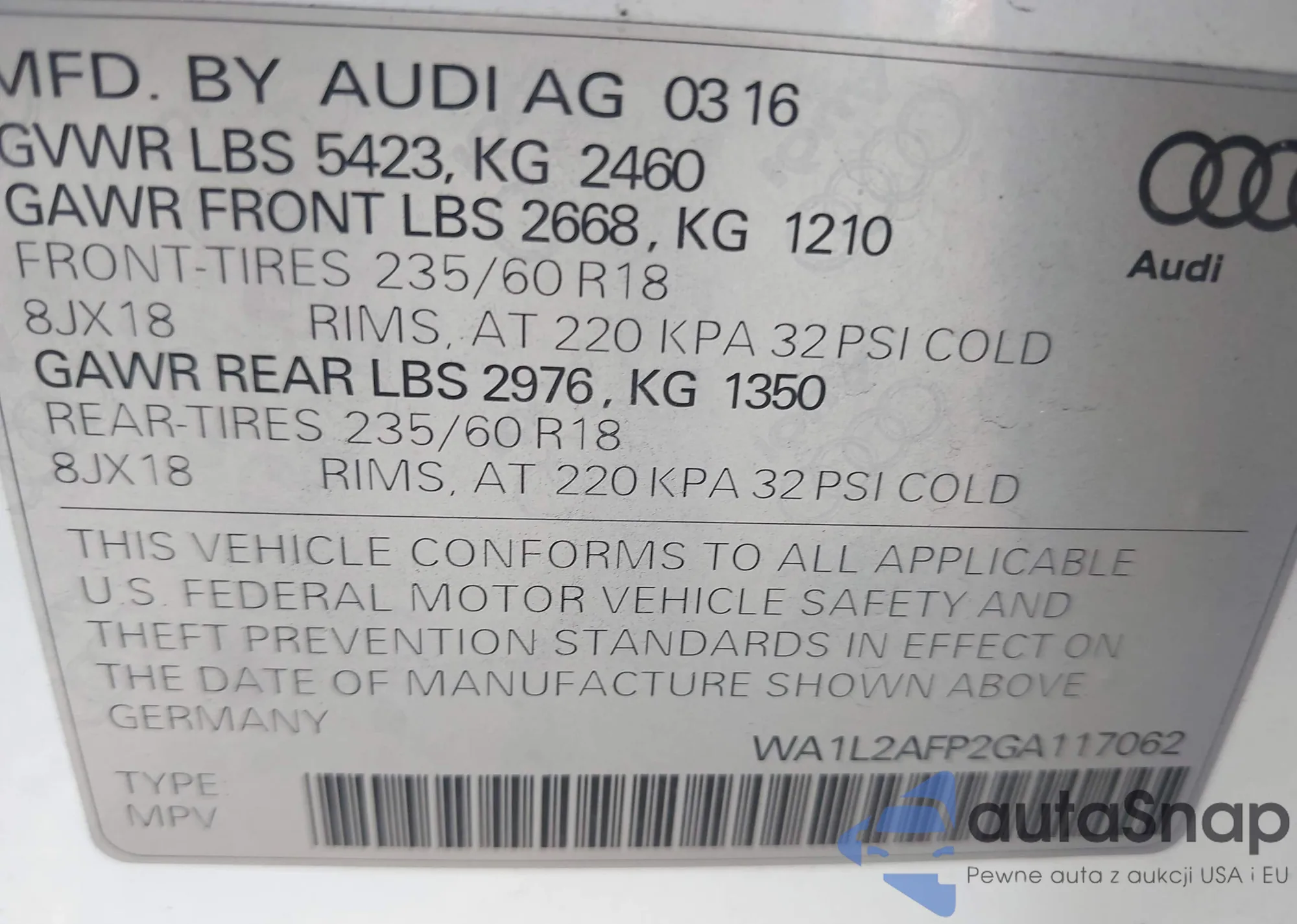 • VIN WA1L2AFP2GA117062