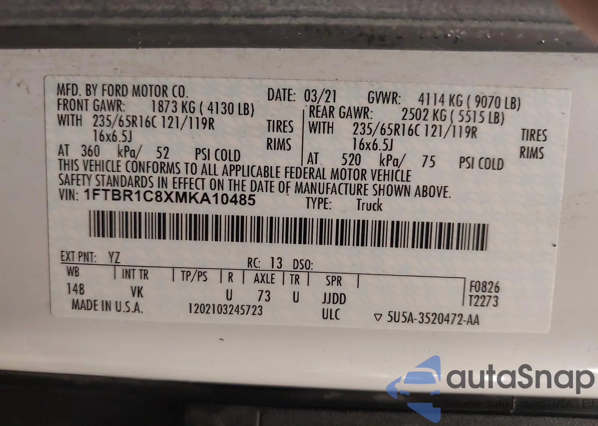 LOT: 43005747 VIN: 1FTEW1EP0MFC39230