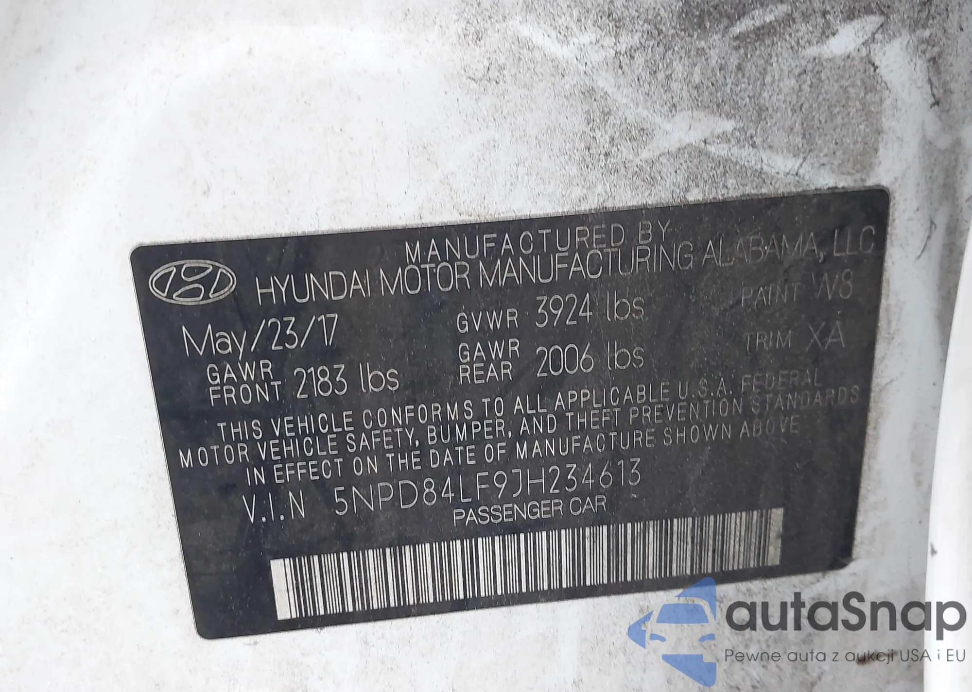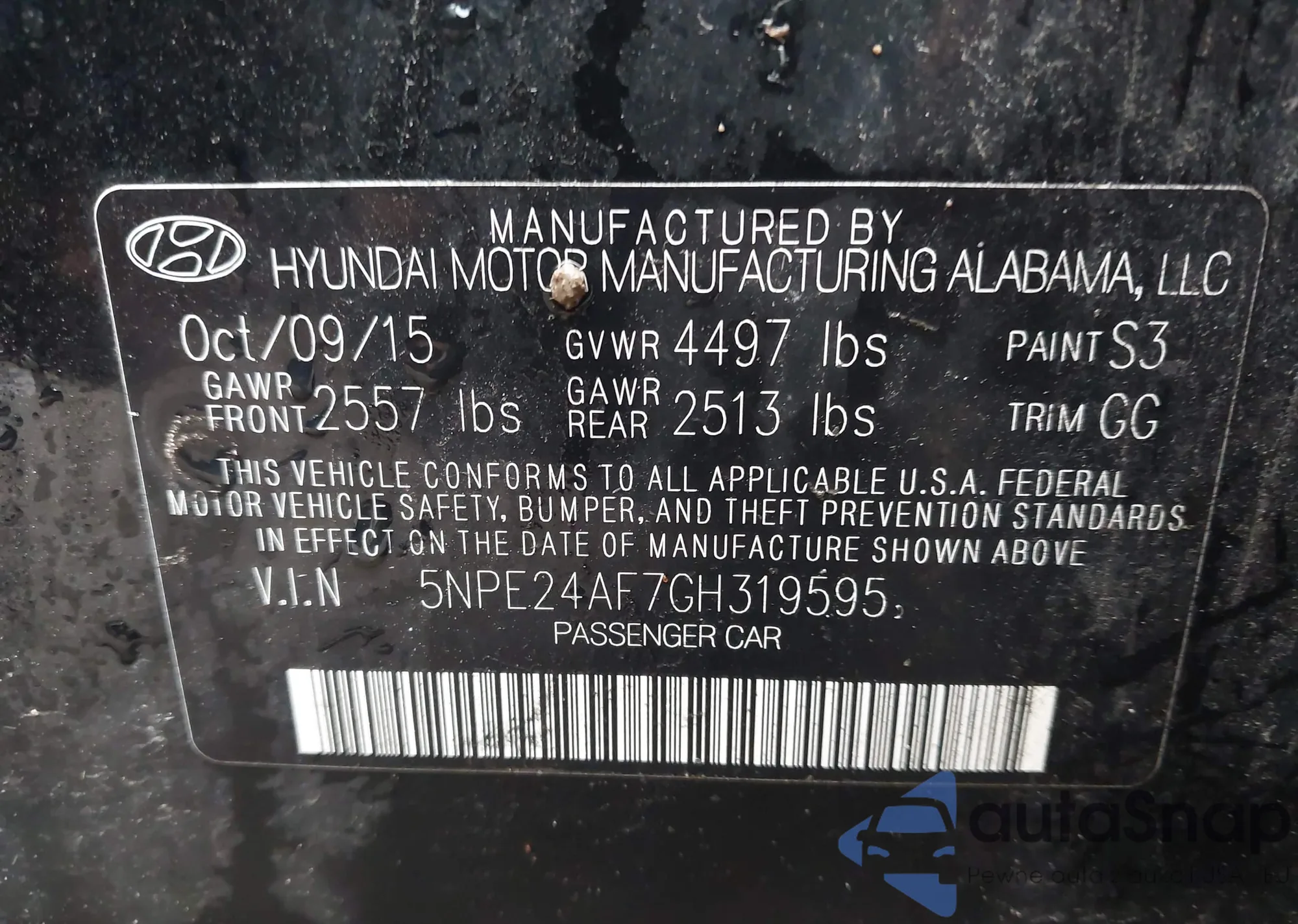• VIN 5NPE24AF7GH319595
