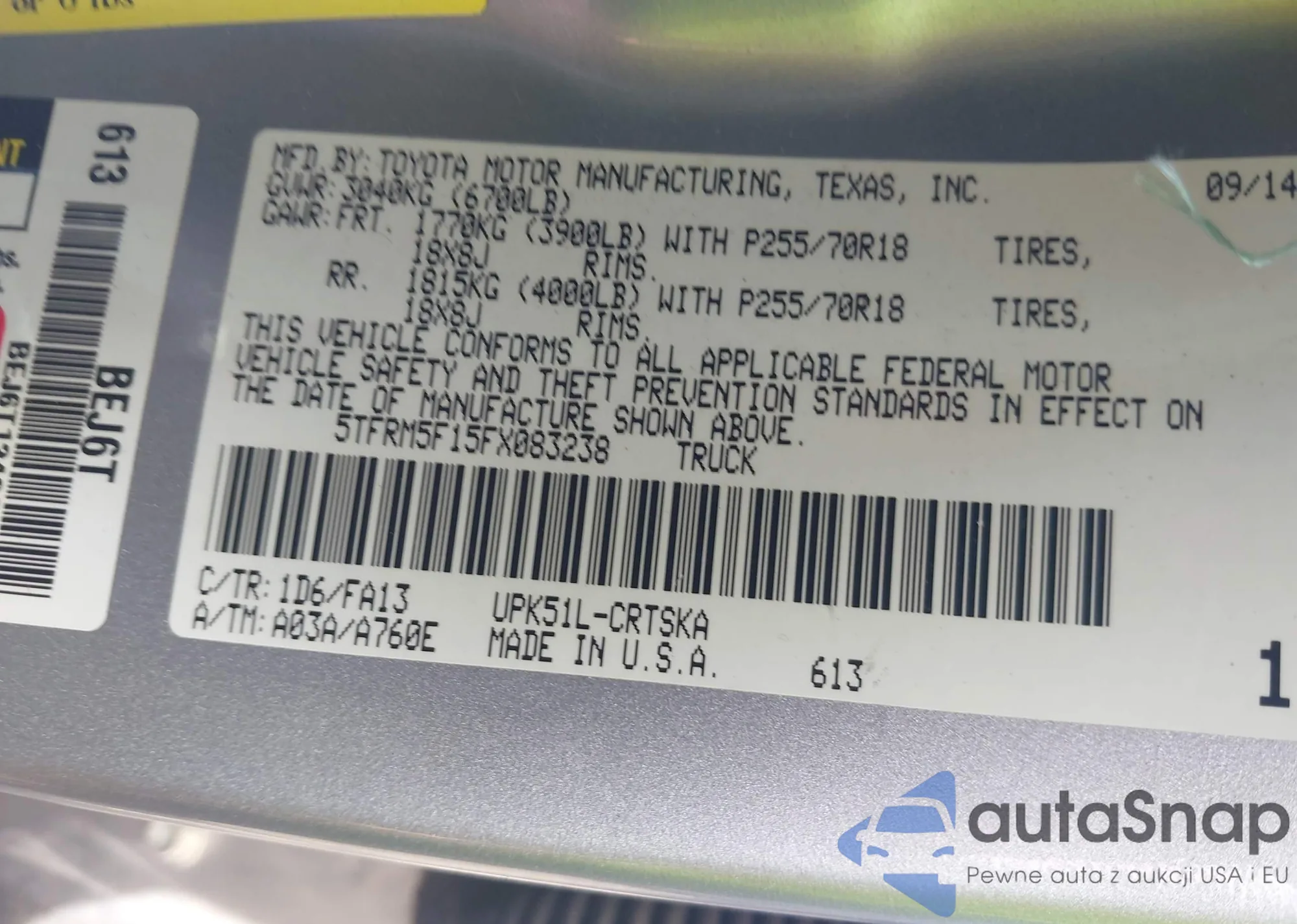 • VIN 5TFRM5F15FX083238