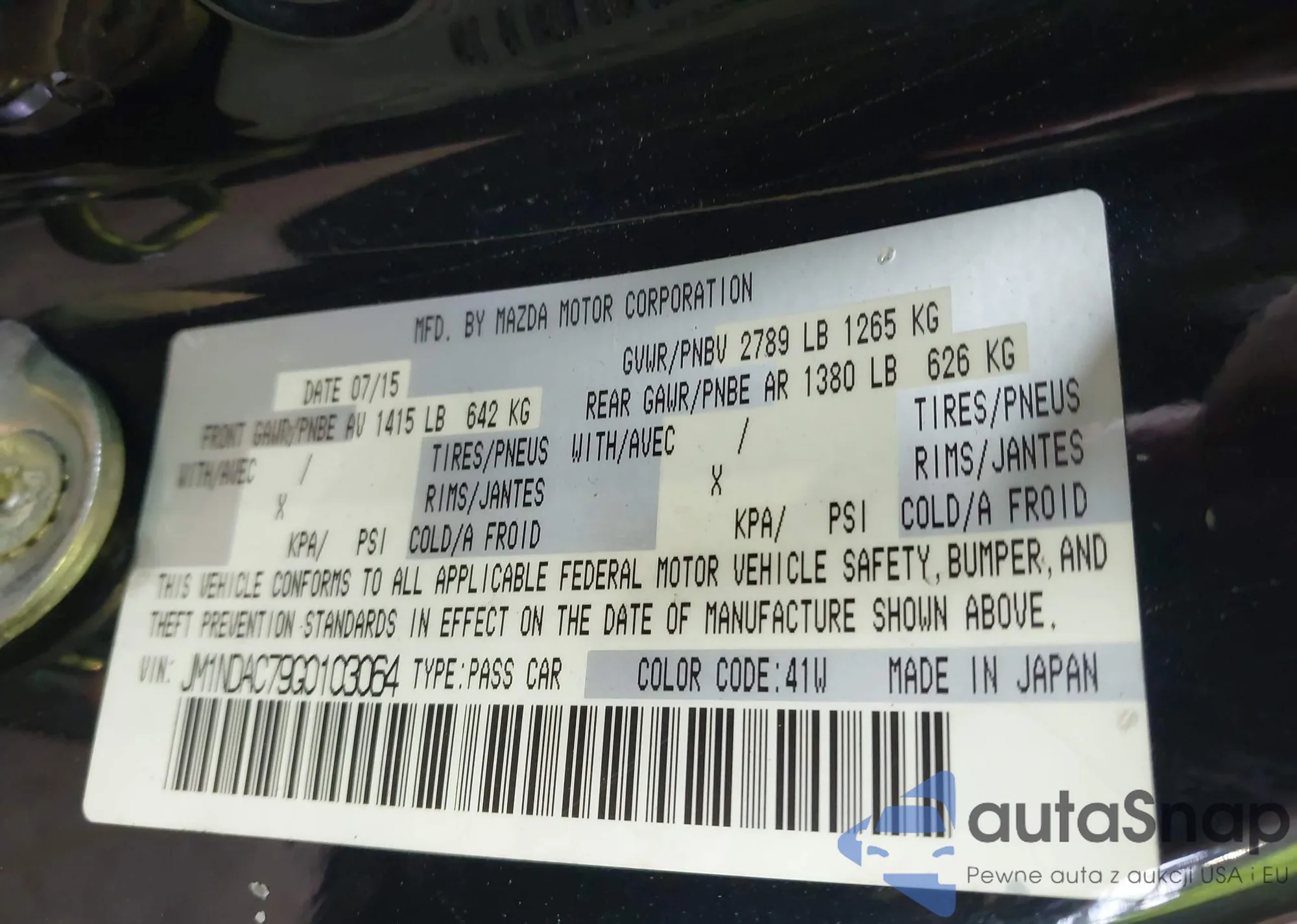 LOT: 42020774 VIN: JM1NDAC79G0103064