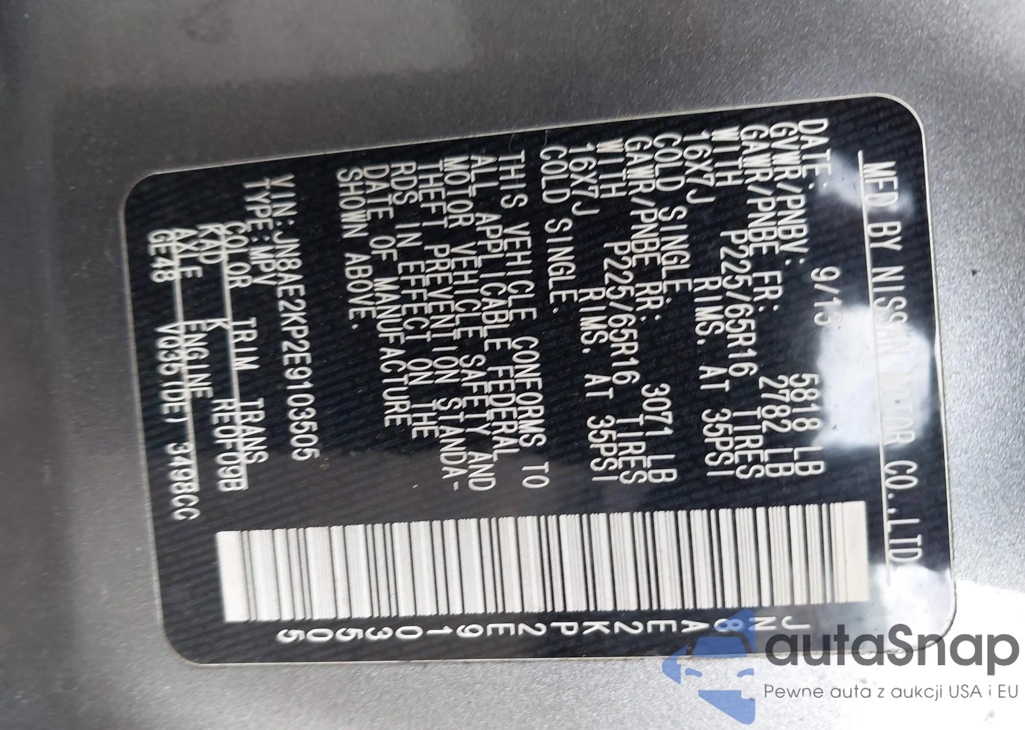 LOT: 43080215 VIN: JN8AE2KP2E9103505
