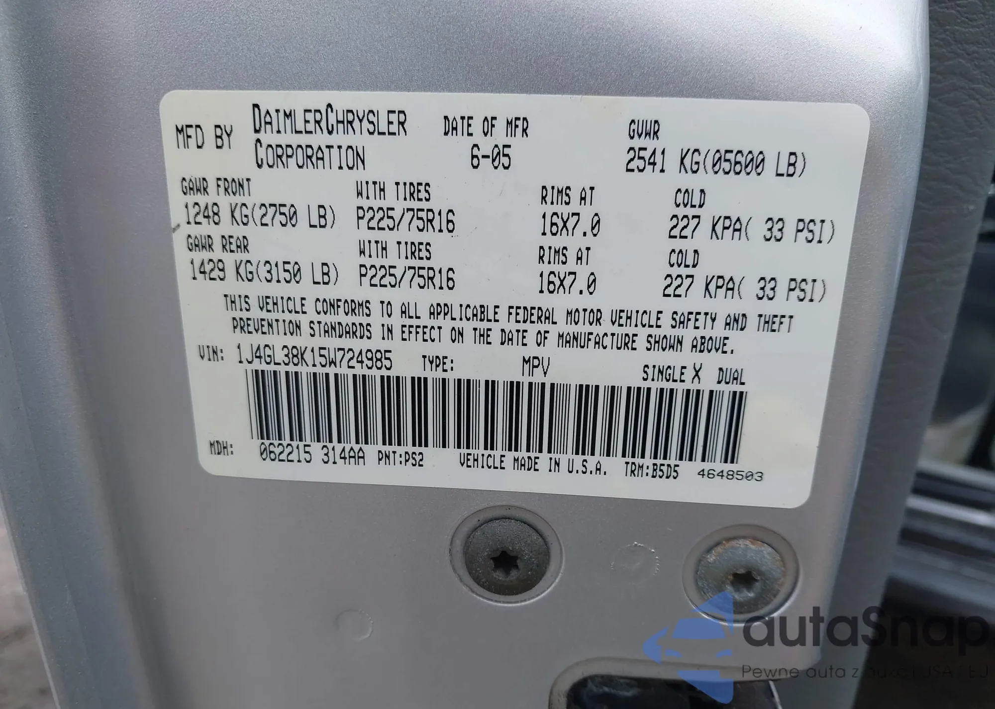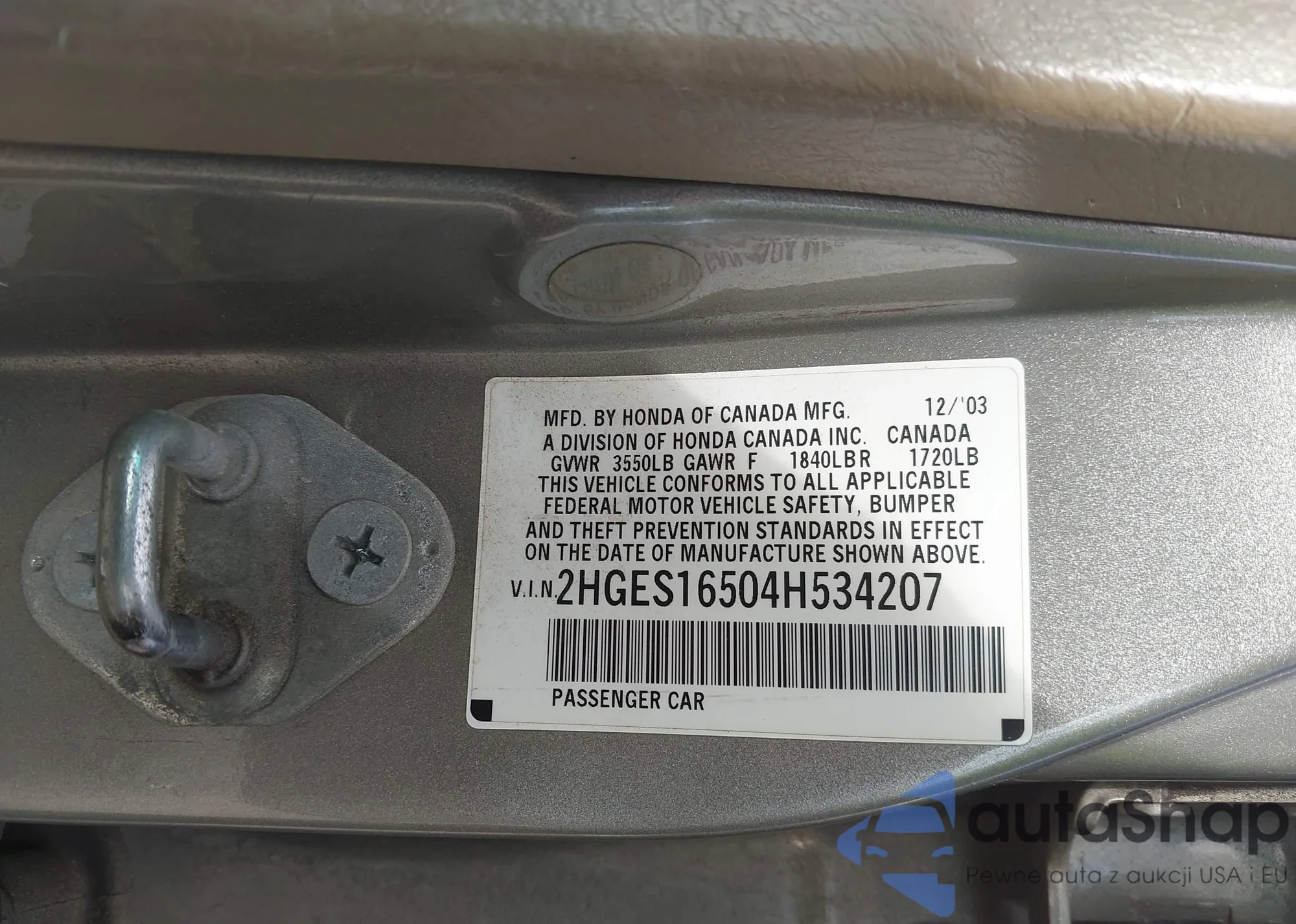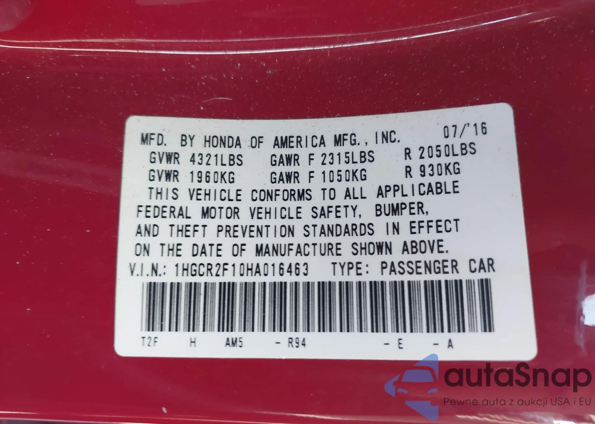 • VIN 5J8TB3H38JL004113