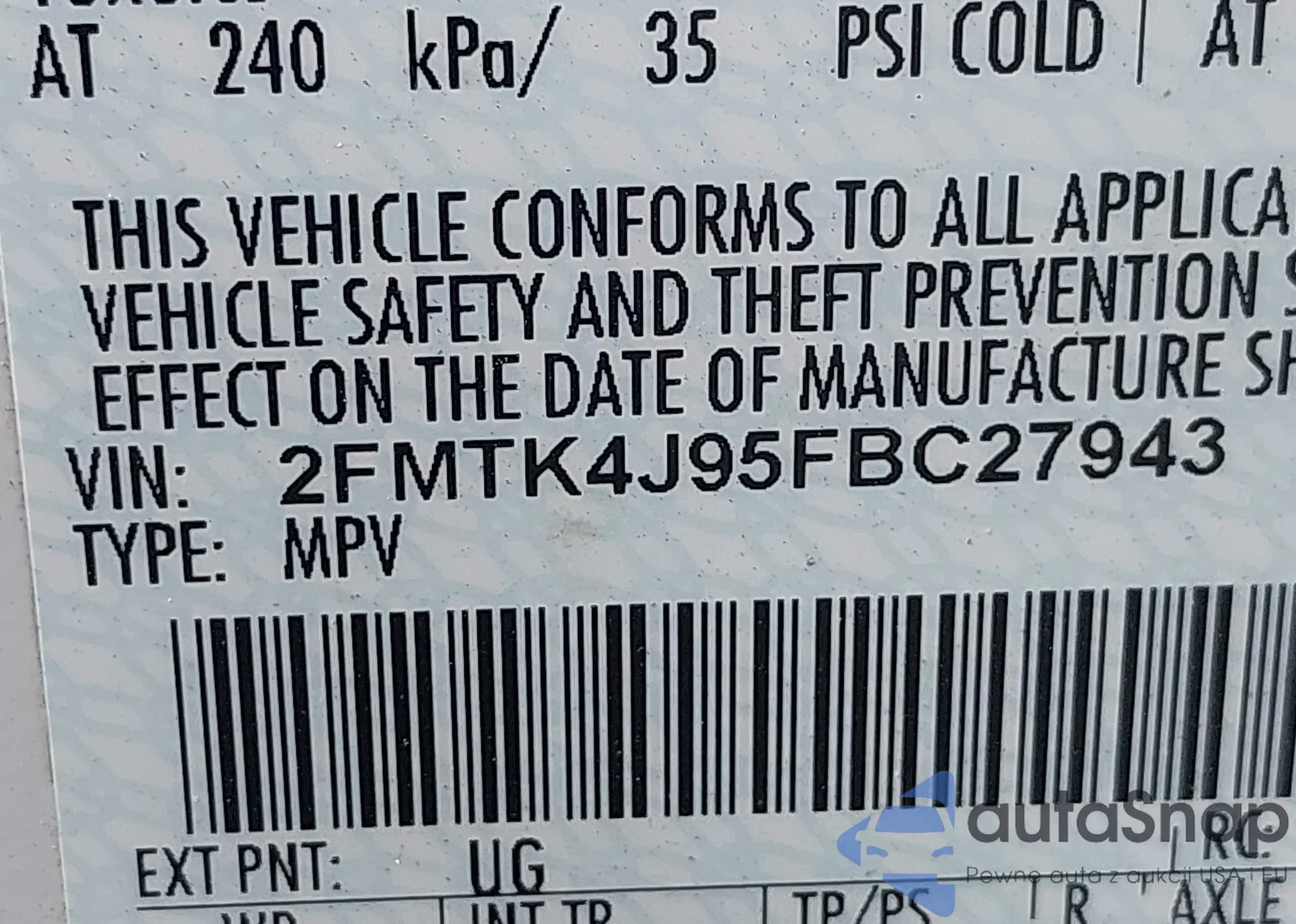 LOT: 43146045 VIN: 2FMTK4J95FBC27943