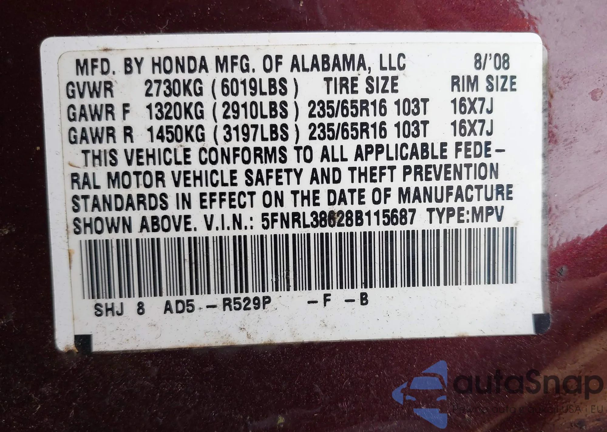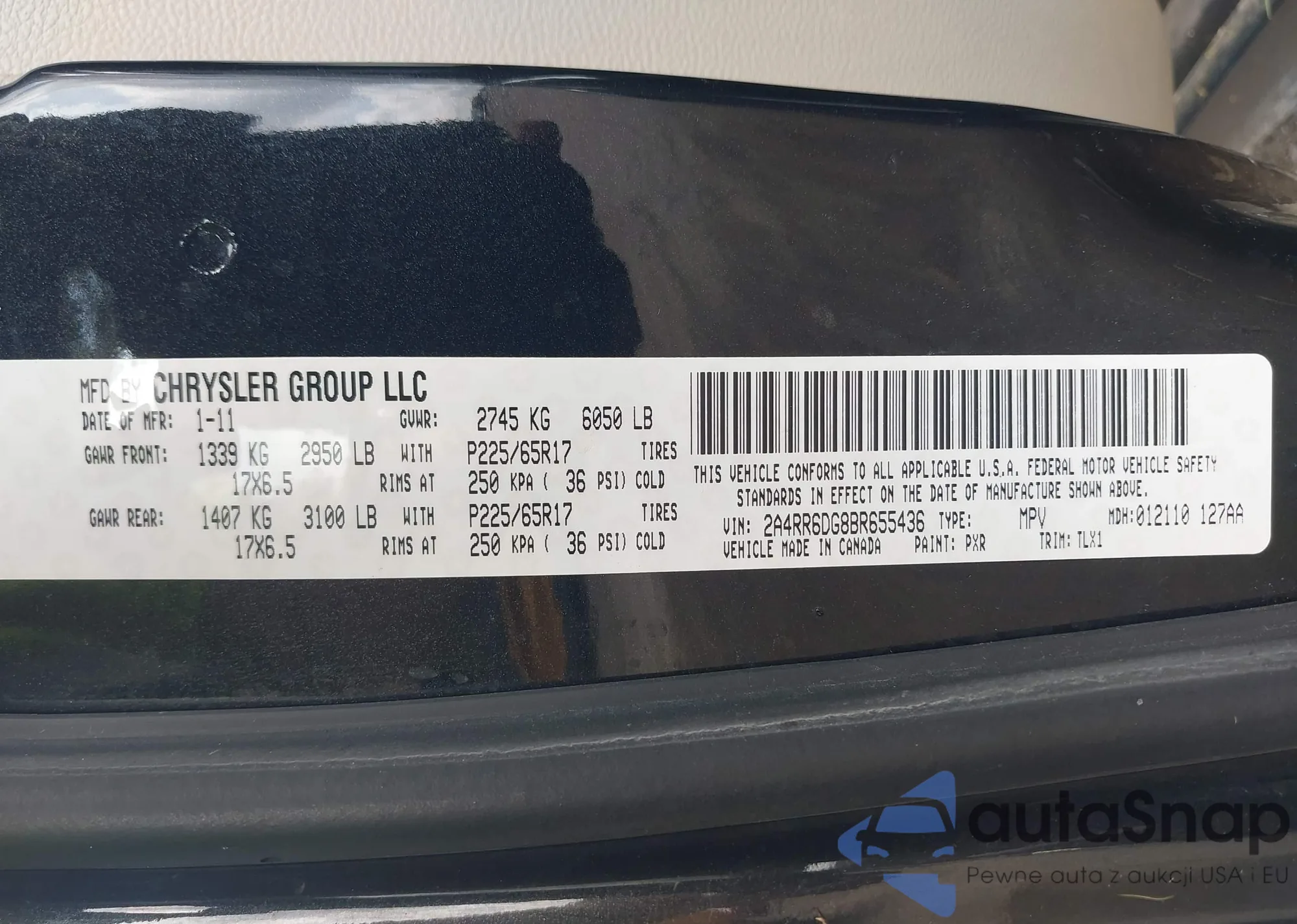 LOT: 42948248 VIN: 2A4RR6DG8BR655436