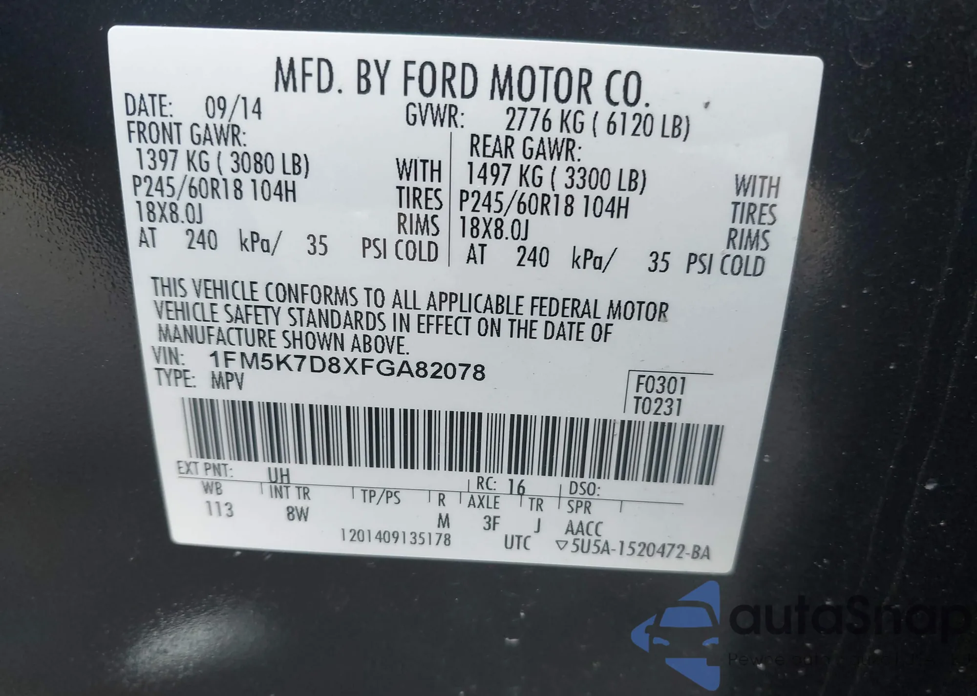 • VIN 1FM5K7D8XFGA82078