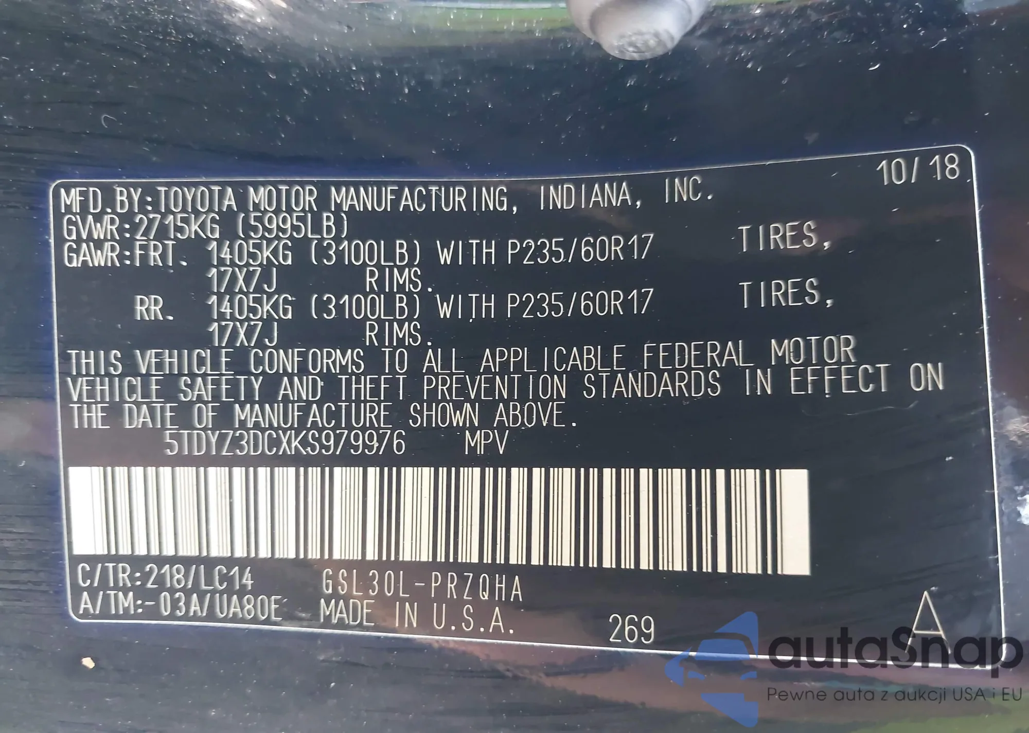 • VIN 5TDYZ3DCXKS979976