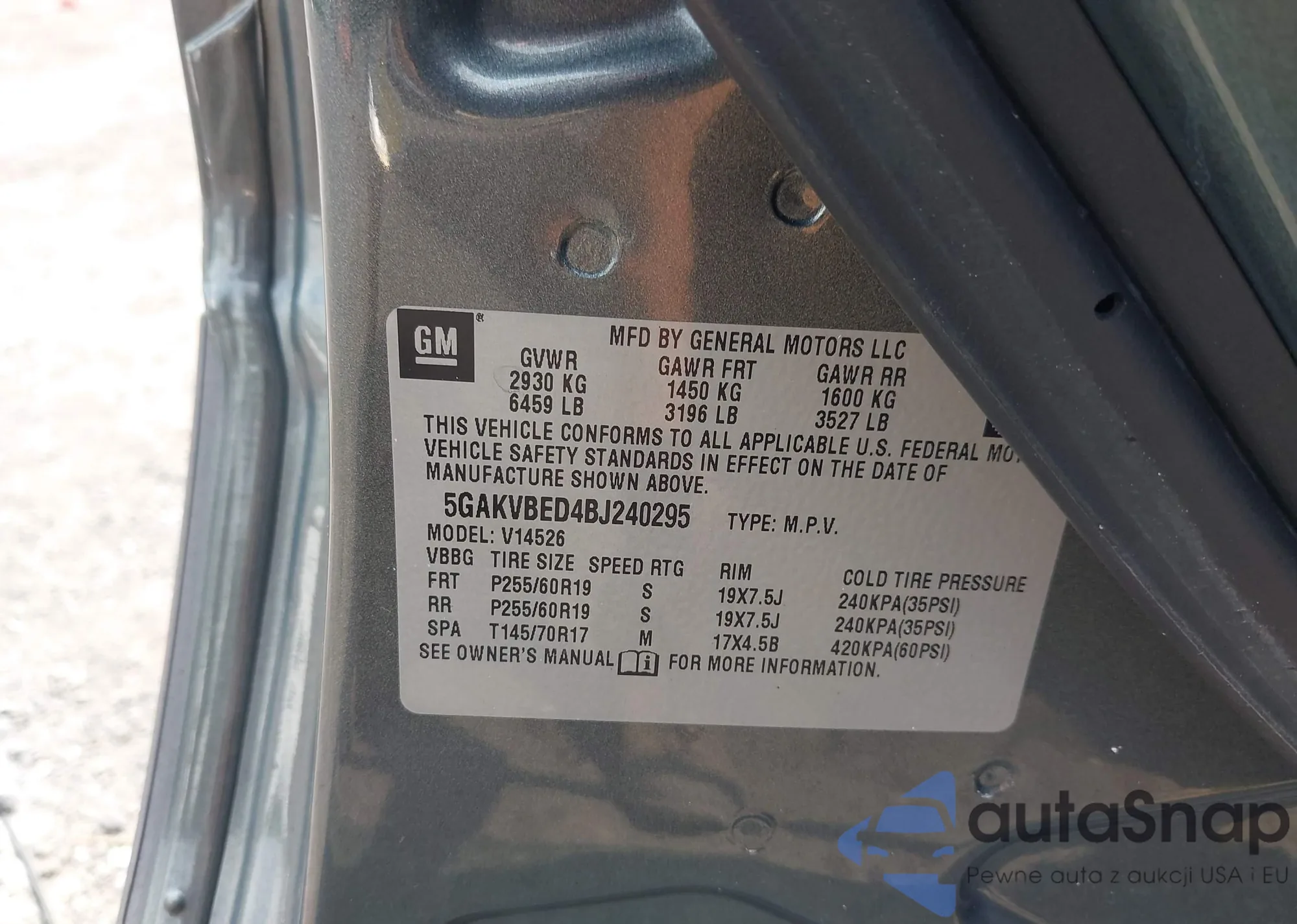 • VIN 5GAKVBED4BJ240295