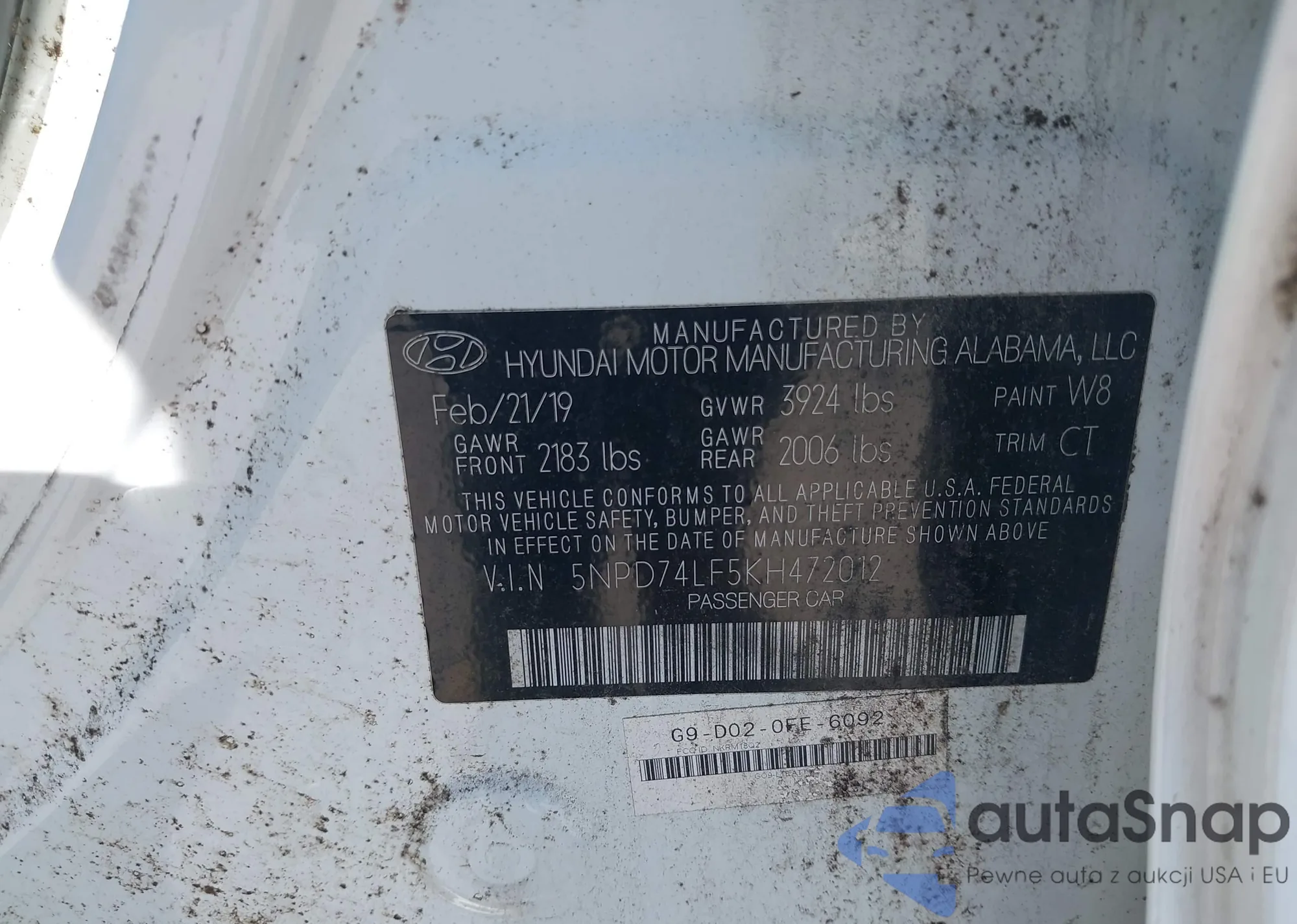 LOT: 43201333 VIN: 5NPD74LF5KH472012