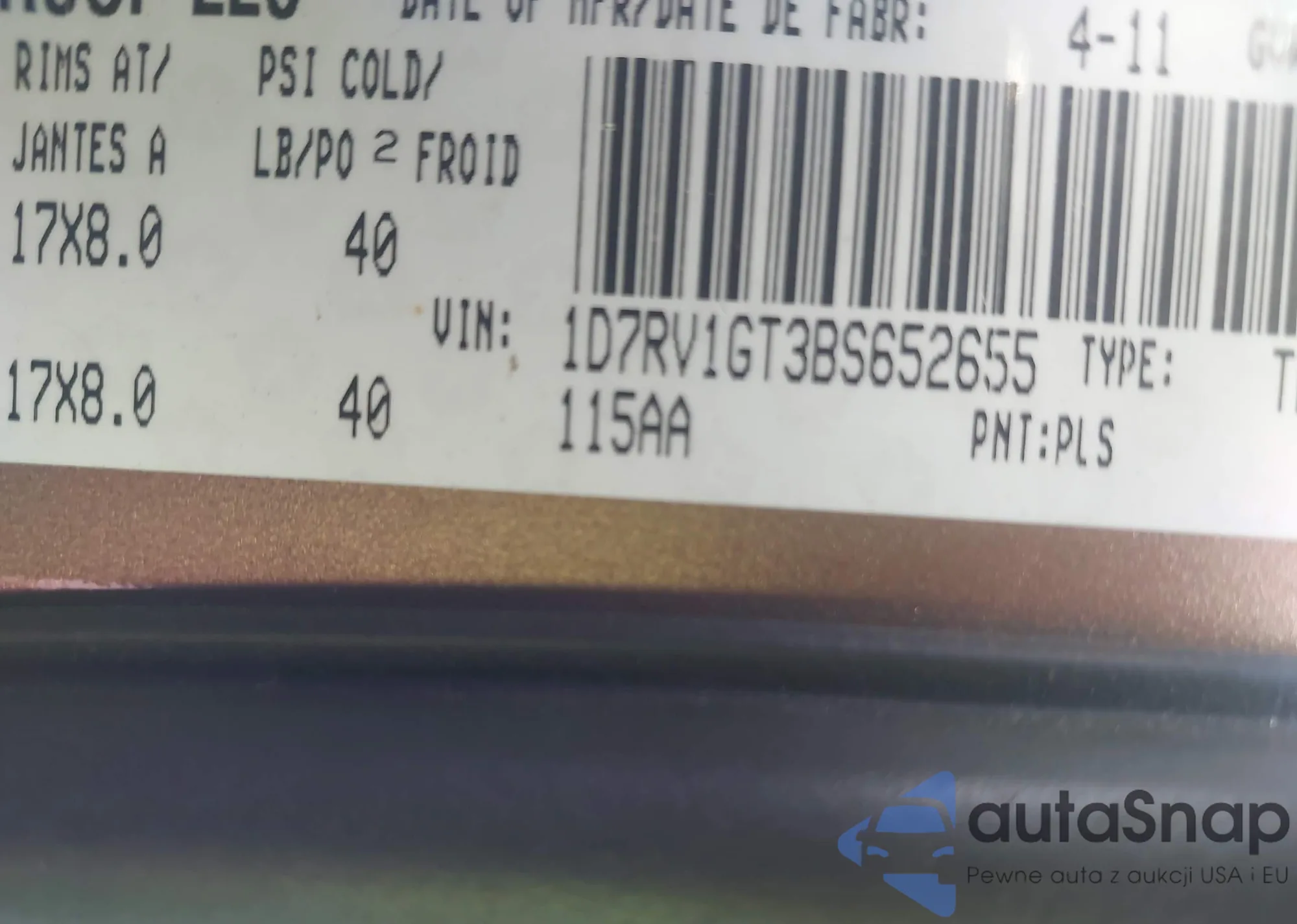 • VIN 1D7RV1GT3BS652655