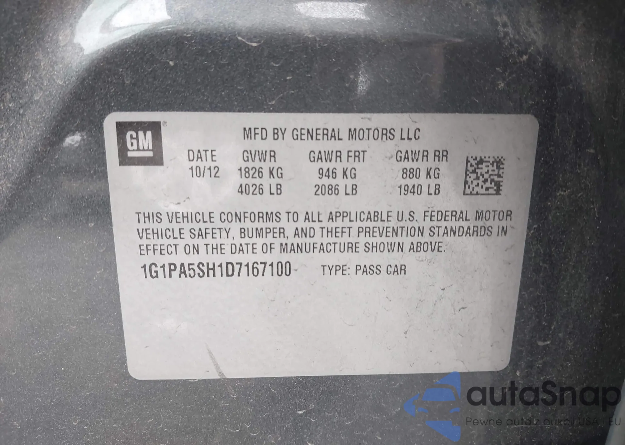 LOT: 42763619 VIN: 1G1PA5SH1D7167100