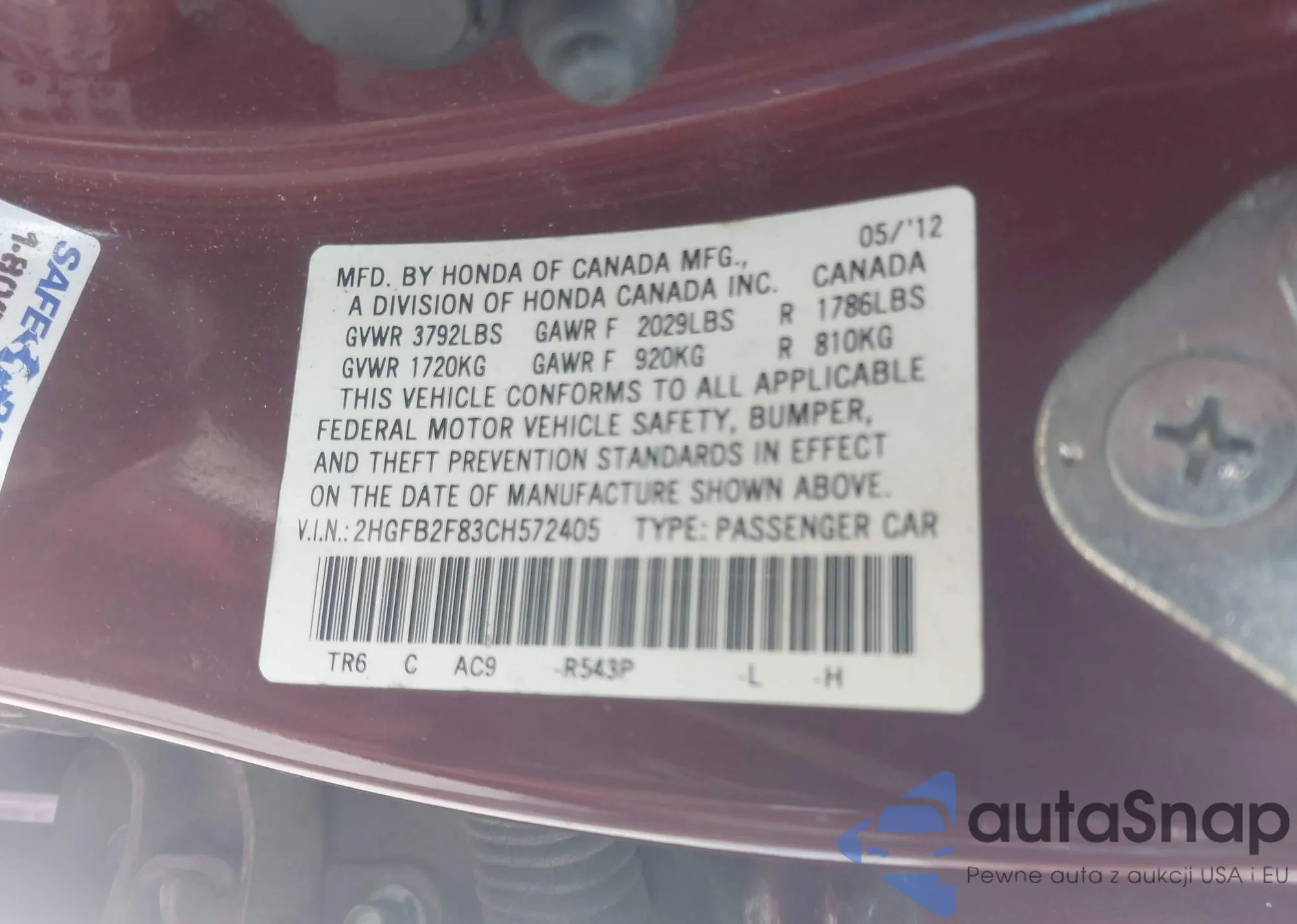 LOT: 42972468 VIN: 19UUA66284A032996