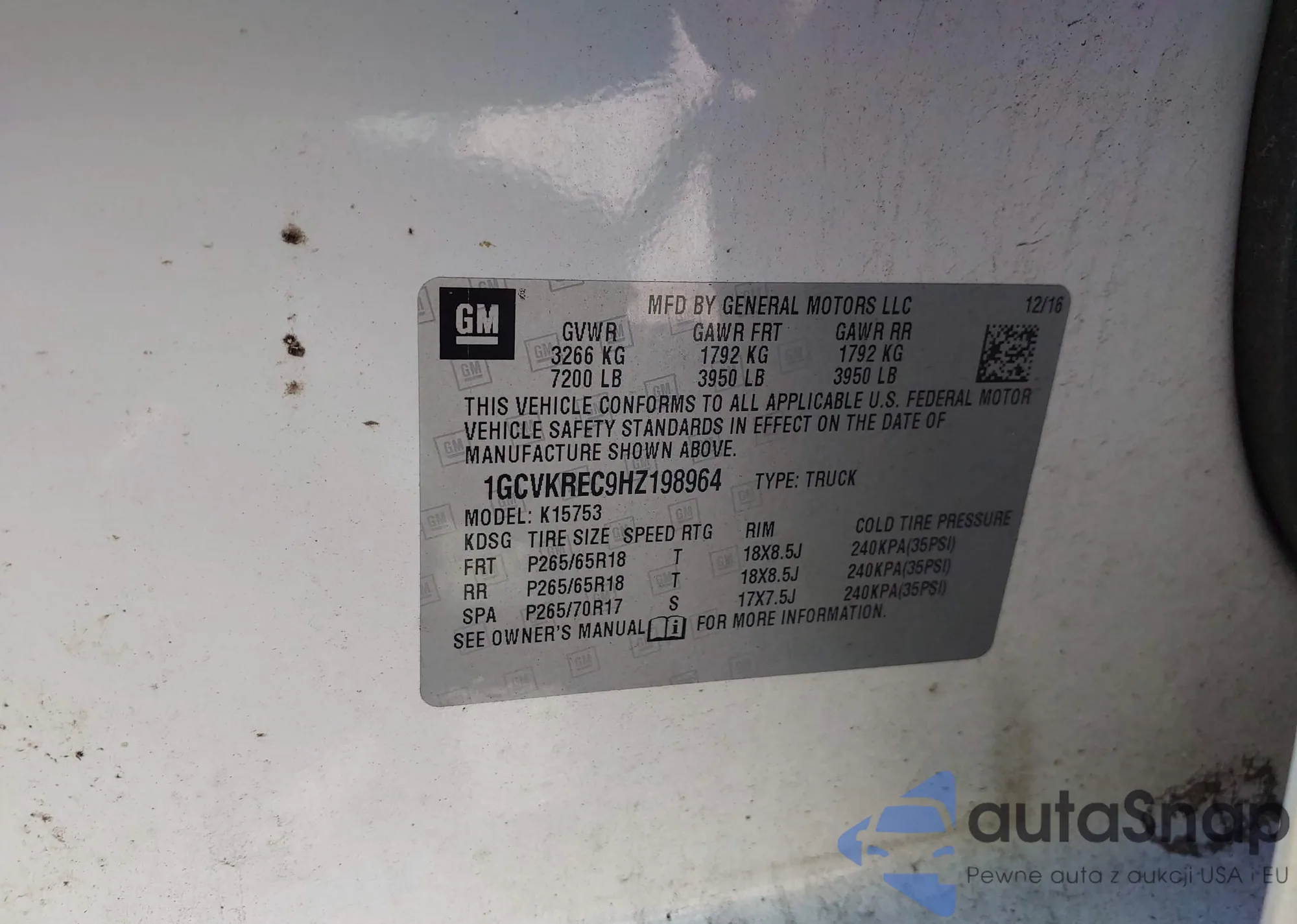 LOT: 42881248 VIN: 1GCVKREC9HZ198964