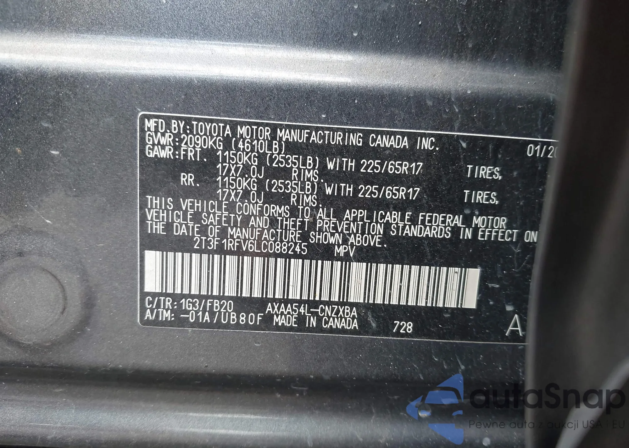 • VIN 2T3F1RFV6LC088245