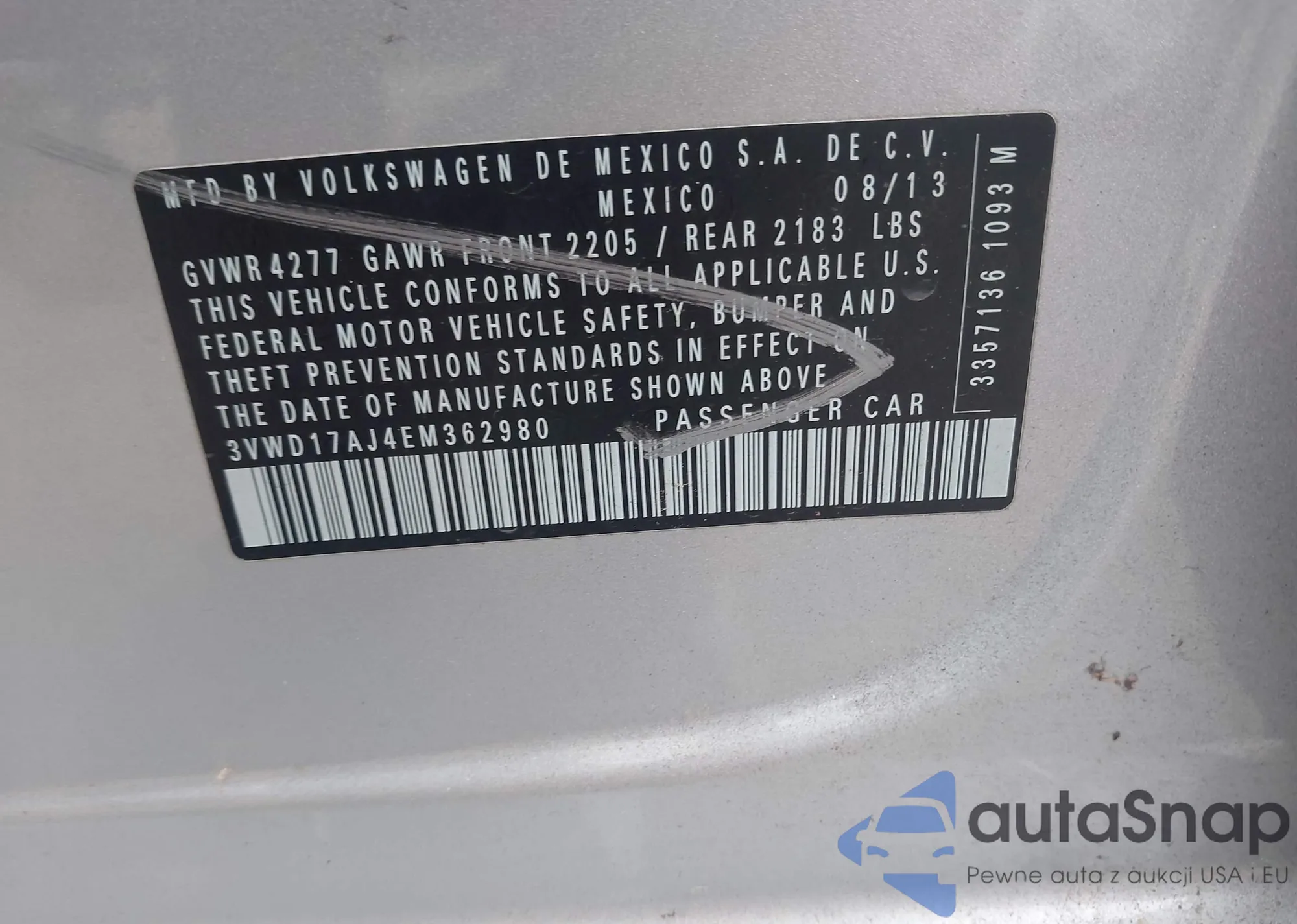 • VIN 1G1PA5SH7E7342614