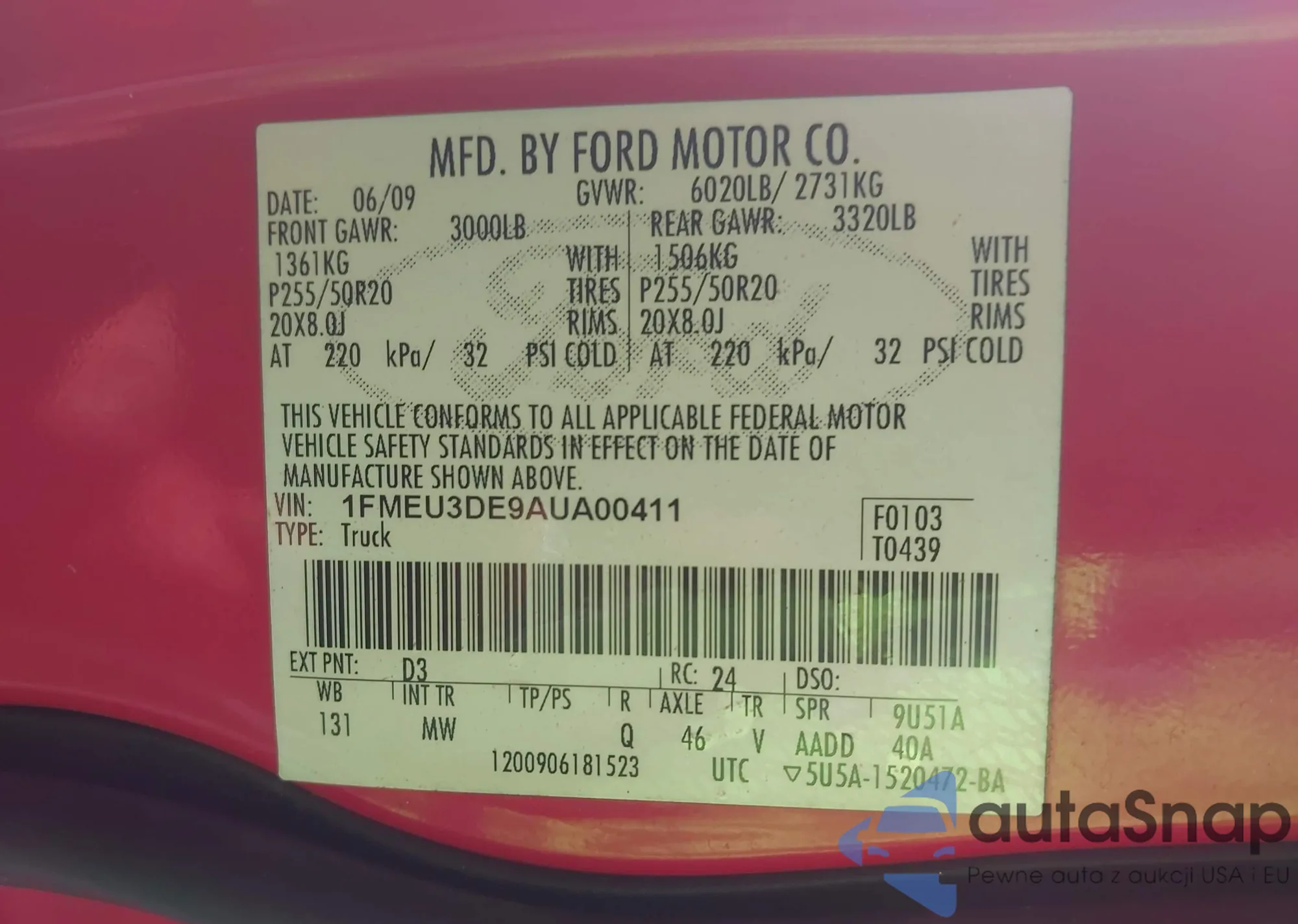 • VIN 1FMEU3DE9AUA00411