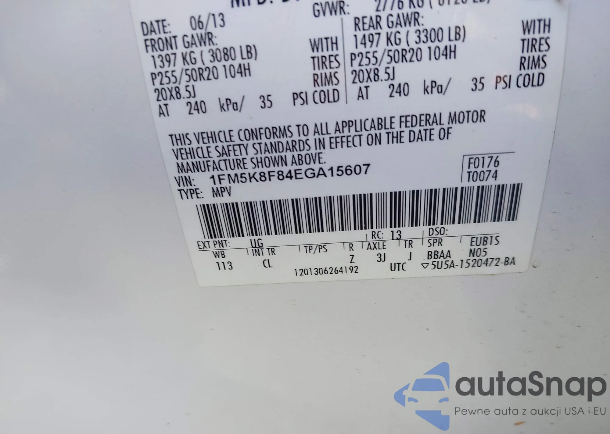 • VIN 1FMCU9GX3FUB54420