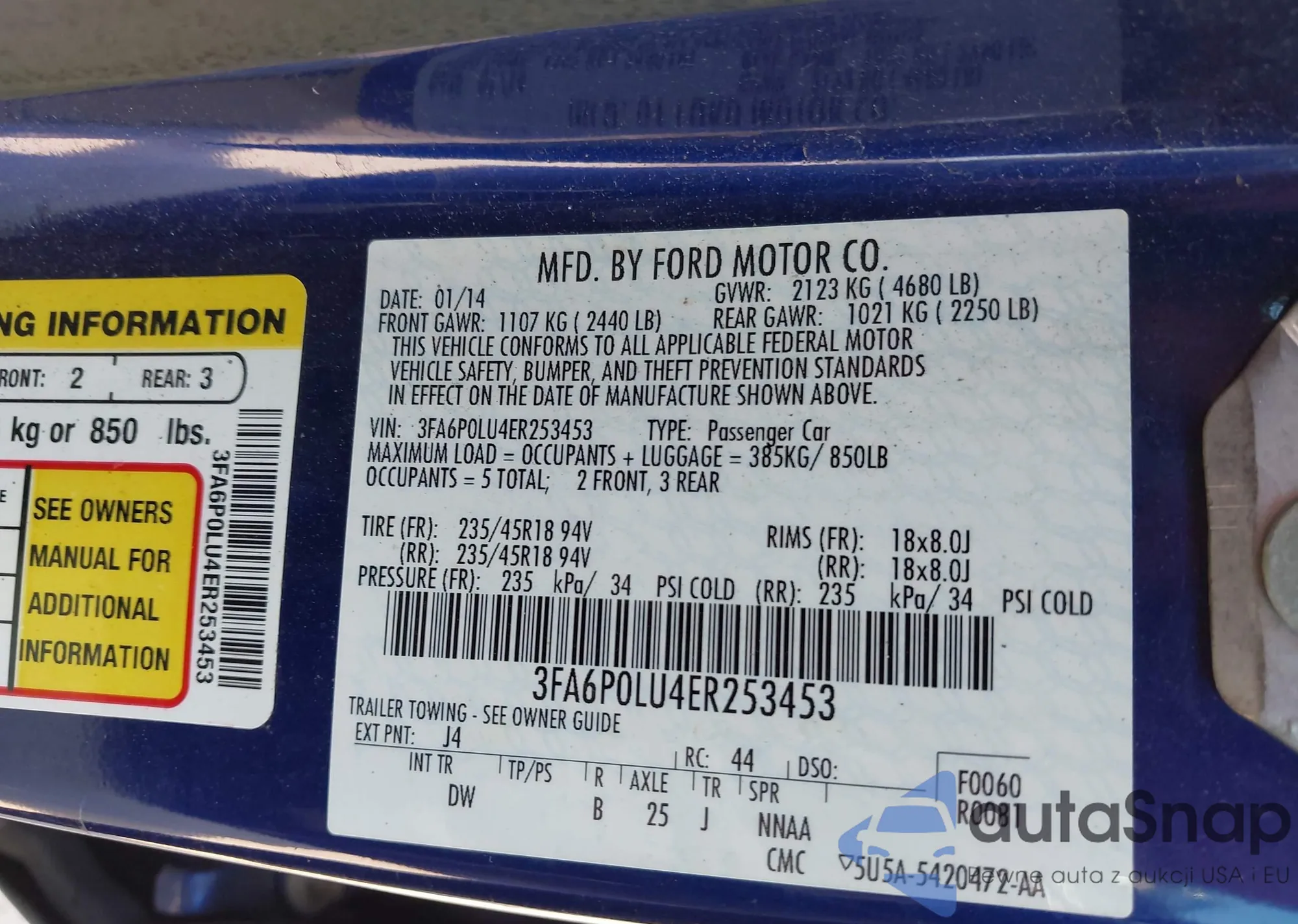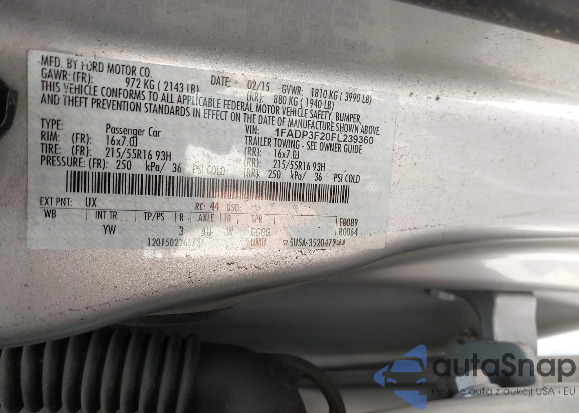 LOT: 42846170 VIN: 1FADP3F20FL239360